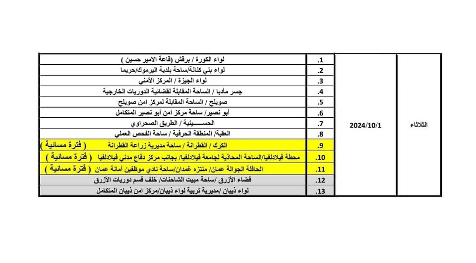 تنوه إدارة الترخيص السواقين والمركبات الى تعديل على برنامج الترخيص المتنقل غدا الثلاثاء الموافق 1/10/2024 وحسب الكشف المرفق