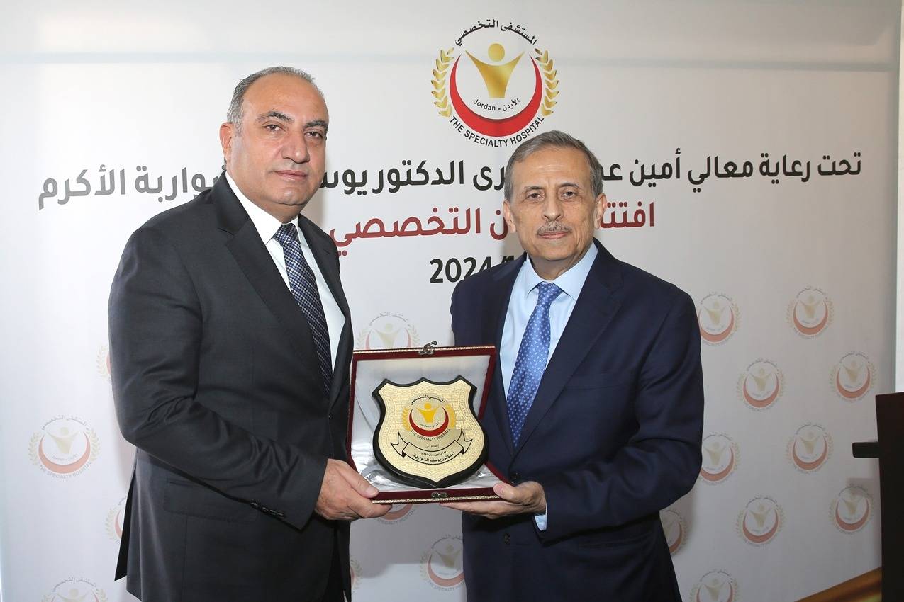 وفي نهاية الحفل قدم الدكتور الحموري درعاً تقديرياً لامين عمان من المستشفى التخصصي تكريماً لجهوده وجهود أمانة عمان في إنجاز ميدان التخصصي، معبّراً بأن جهود الأمانة وتعاونها كانت ولا تزال حجر الزاوية في تطوير بيئتنا المحلية