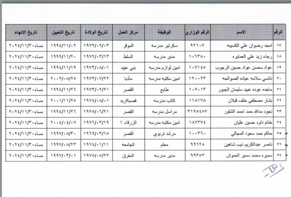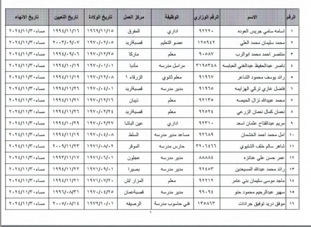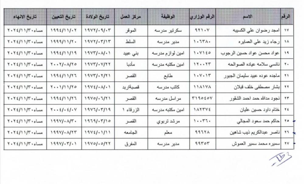 عاجل - إنهاء خدمات موظفين في التربية (أسماء)