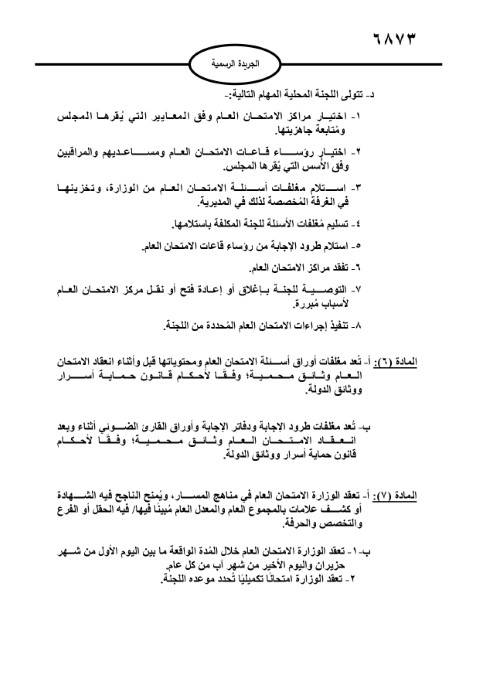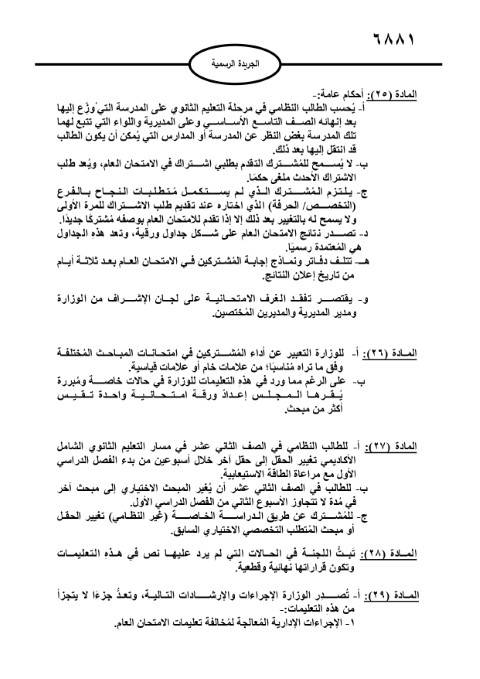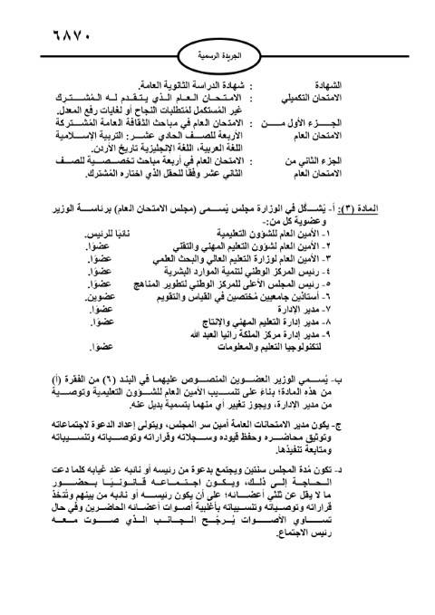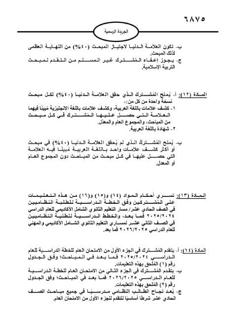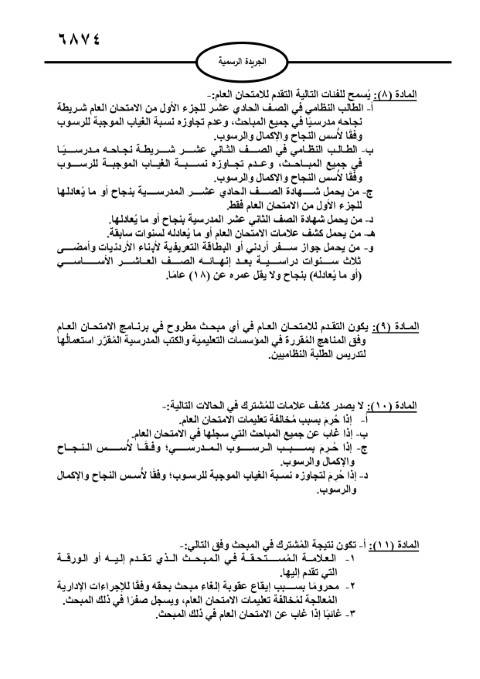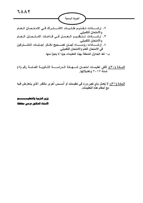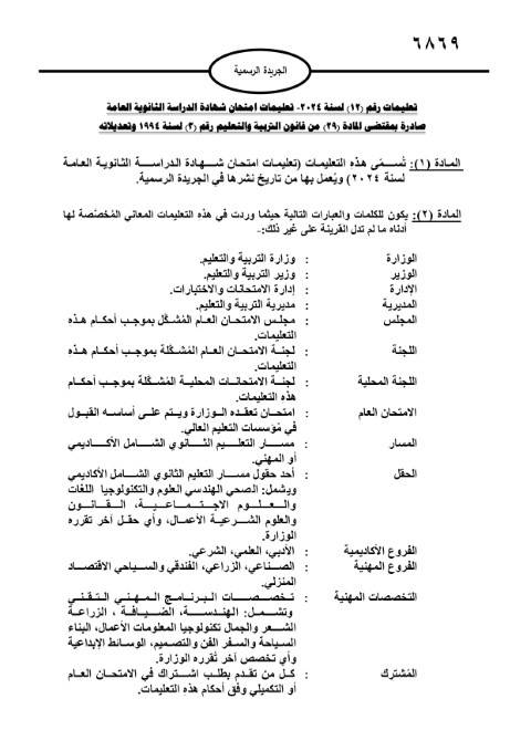 صدرت في عدد الجريدة الرسمية اليوم الأحد، تعليمات امتحان شهادة الدراسة الثانوية العامة.