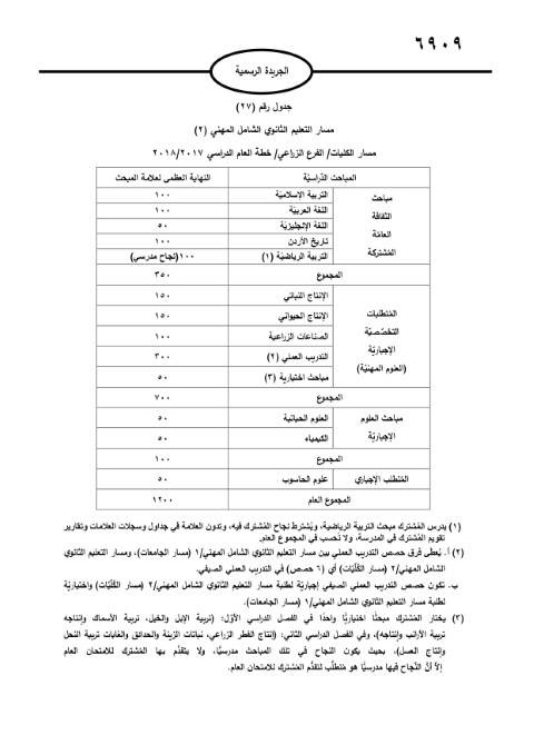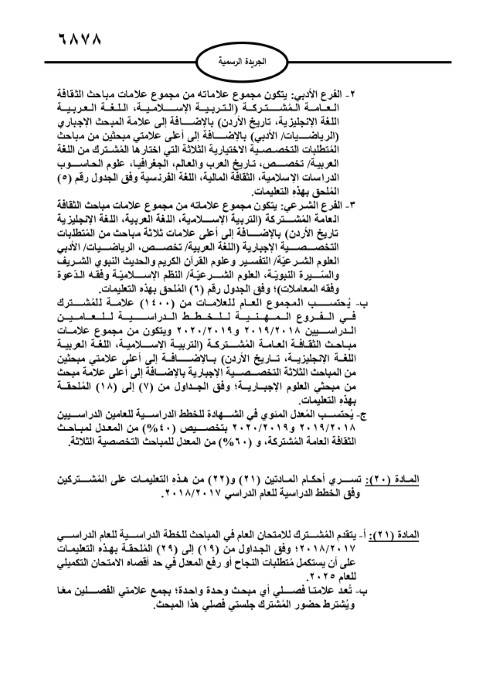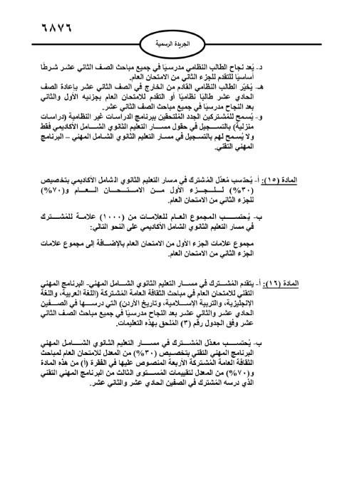 وبحسب المادة 15 من التعليمات فإنّ معدل المشترك في مسار التعليم الثانوي الشامل الاكاديمي يحتسب بتخصيص 30% من للجزء الاول من الامتحان العام، و70% للجزء الثاني من الامتحان العام.