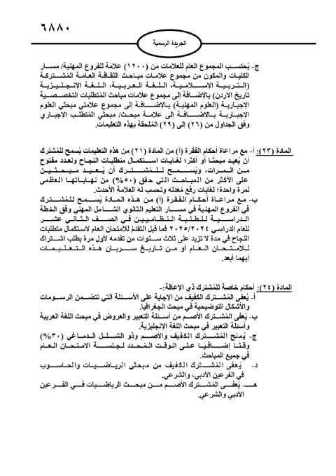 وتنص المادة 24 ( أحكام خاصة للمشترك ذوي الإعاقة) كالآتي: يعفى المشترك الكفيف من الإجابة على الأسئلة التي تتضمن الرسومات والأشكال التوضيحية في مبحث الجغرافيا.