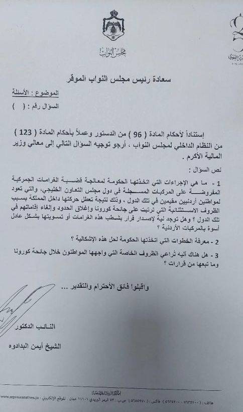 وأكد النائب البدادوة أن هذه الأسئلة تأتي في إطار تعزيز الدور الرقابي لمجلس النواب، وحرصه على متابعة القضايا التي تهم الشارع الأردني. وشدد على أهمية التزام الحكومة بالشفافية في التعامل مع هذه الملفات الحيوية بما يحقق مصلحة الوطن والمواطن.