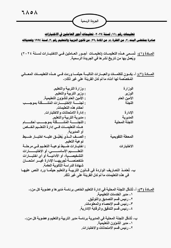 وتاليًا نص التعليمات كاملة كما ورد بالجريدة الرسمية: