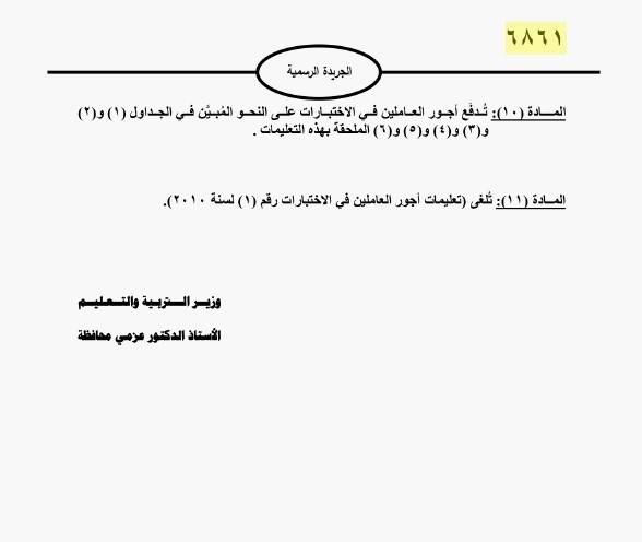 كما نصت المادة 11 على أنه تلغى التعليمات المتعلقة بأجور العاملين في الاختبارات رقم 1 لسنة 2010.