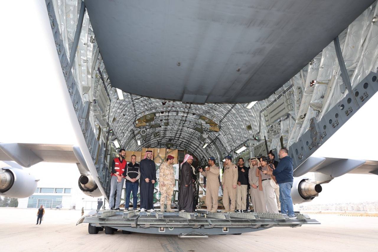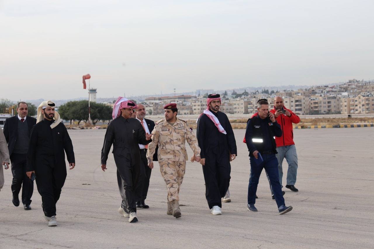 وكان في استقبال المساعدات، الشيخ سعود بن ناصر بن جاسم آل ثاني، سفير دولة قطر لدى المملكة الأردنية الهاشمية.