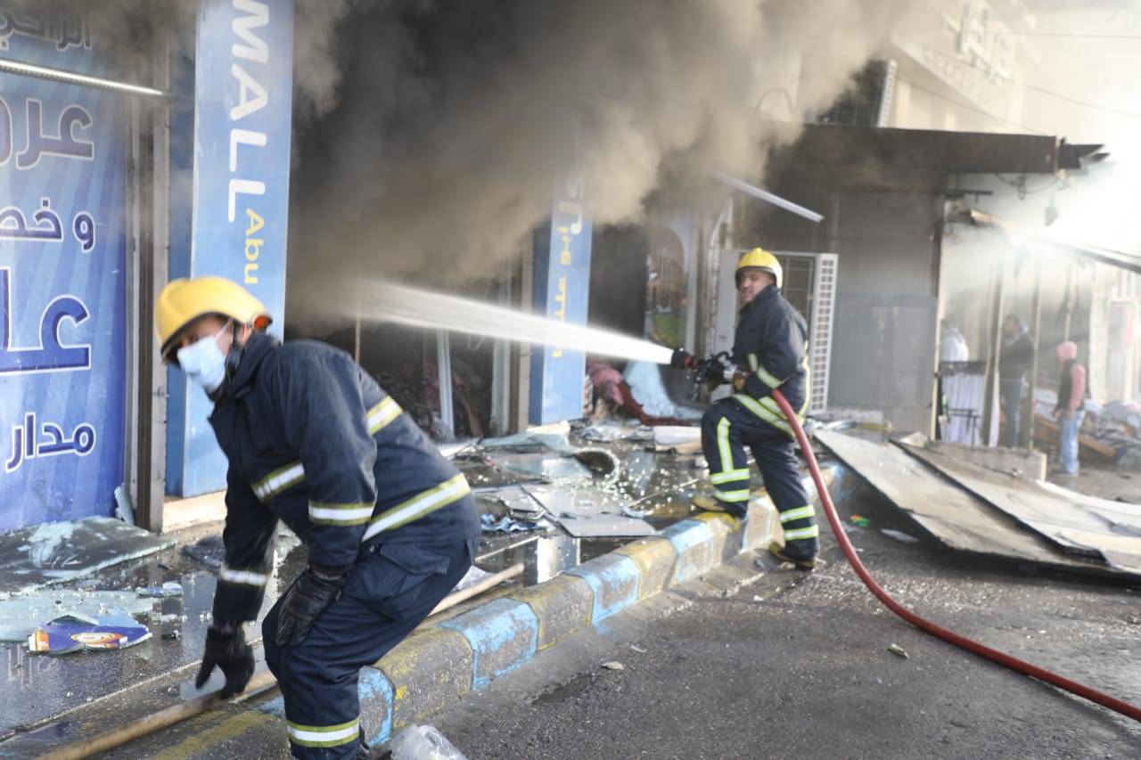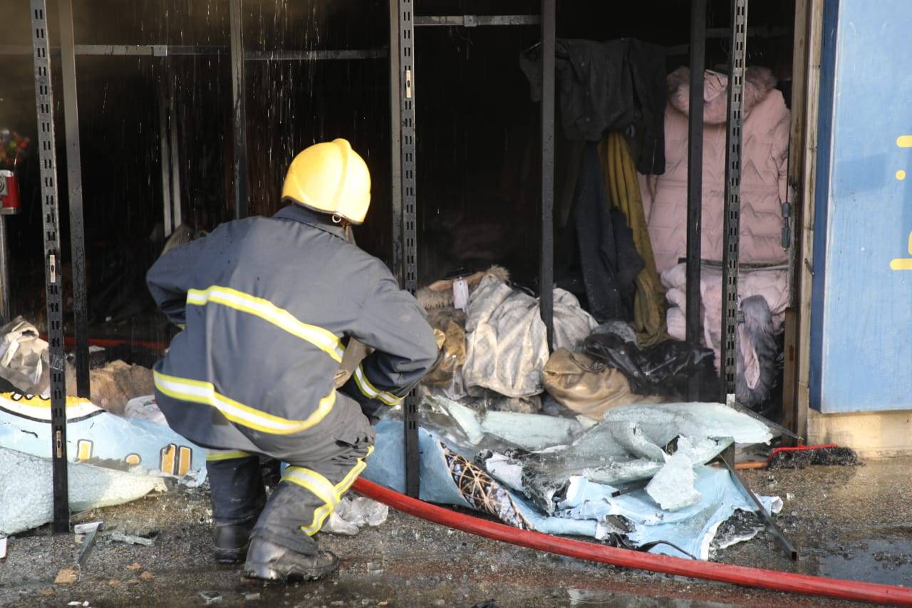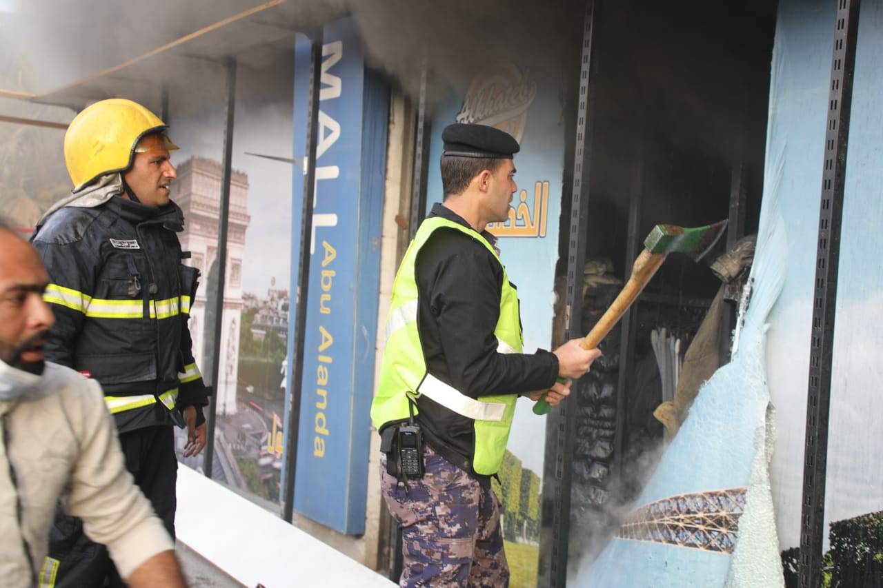 كوادر الدفاع المدني تخمد حريقاً بمحل ملابس في عمان - صور