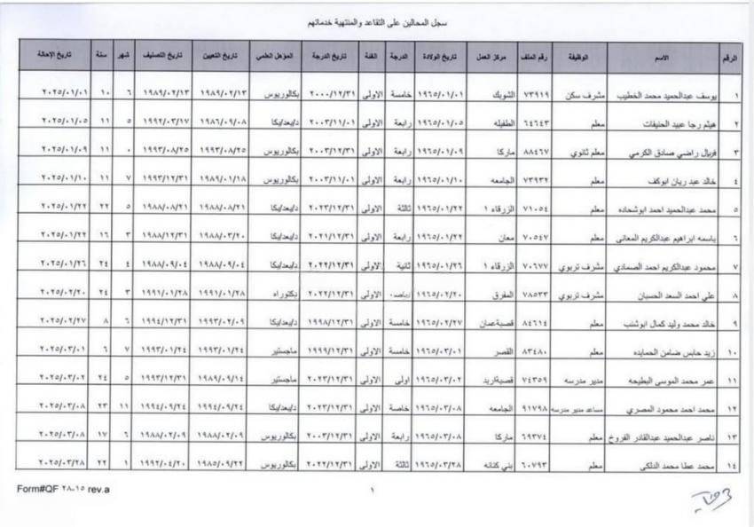 وجاء قرار إنهاء الخدمات لبلوغهم السن القانونية وتاليا الاسماء :