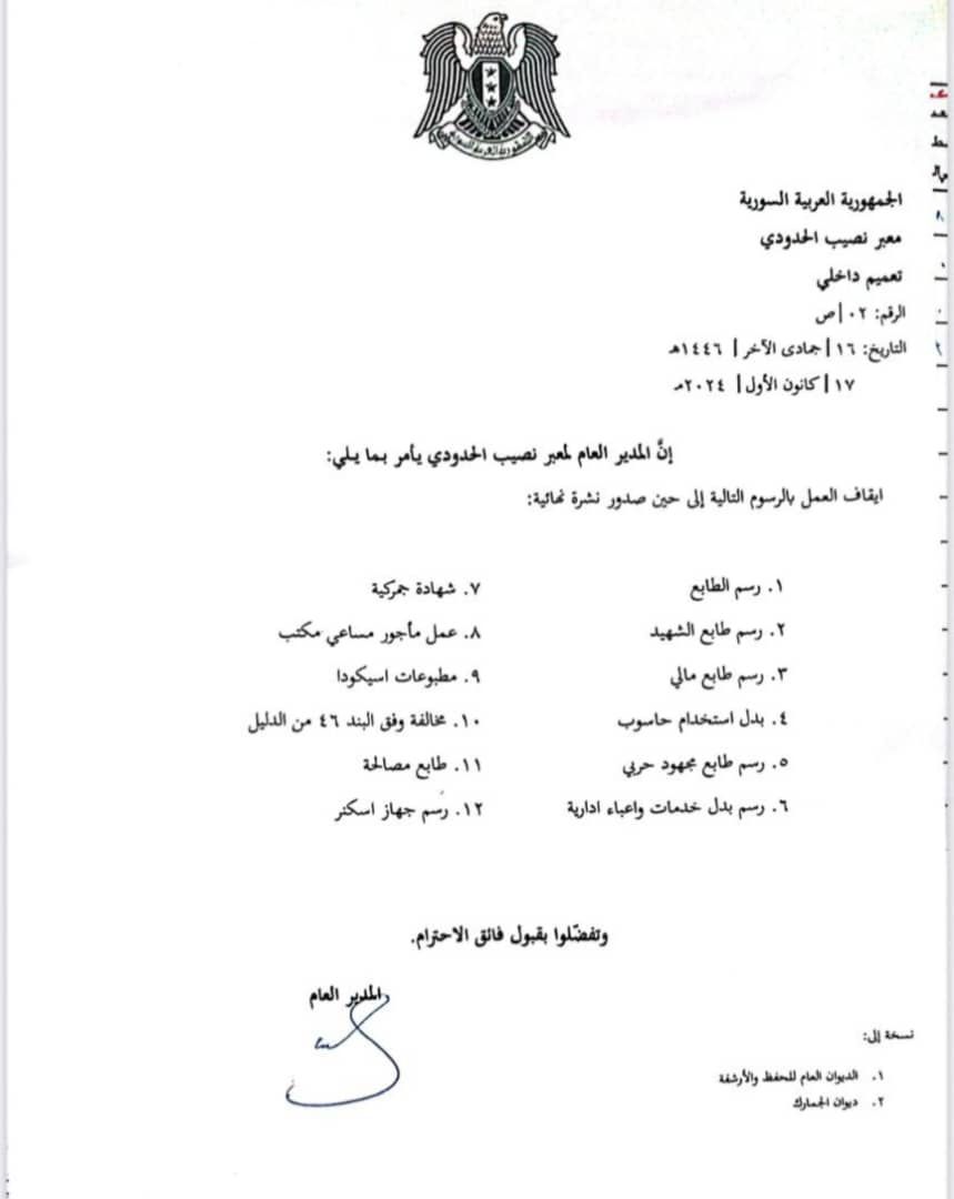 استئناف العمل بالتصدير إلى سوريا عبر معبر جابر والغاء جميع الرسوم