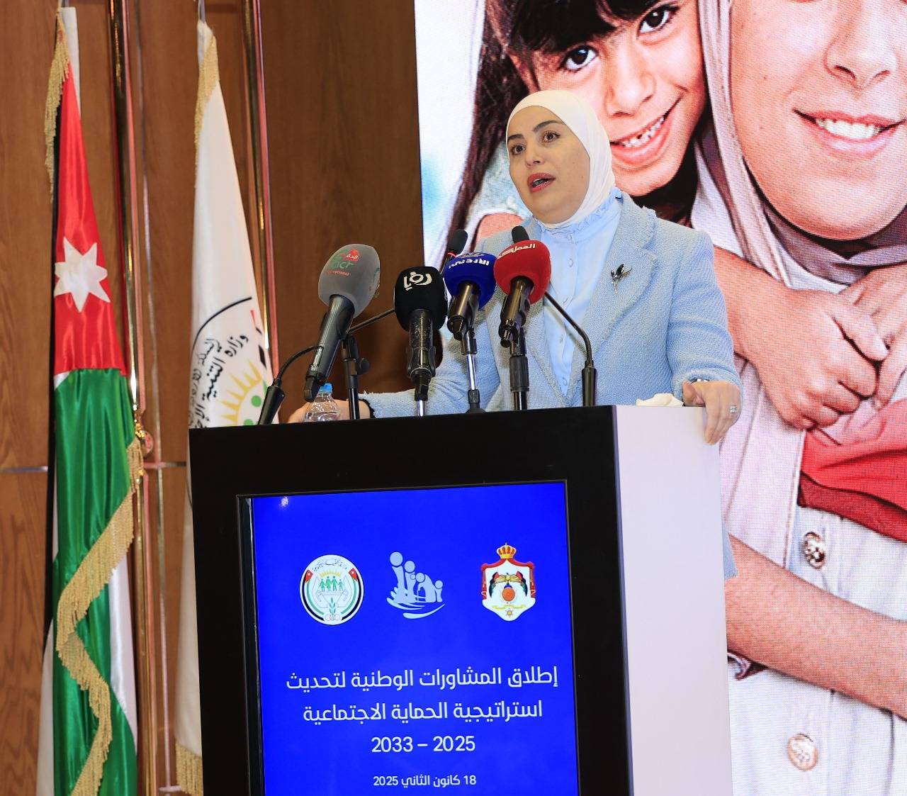 وتطرقت وزيرة التنمية الاجتماعية إلى أن غاية الاستراتيجية النهوض بقطاع الحماية الاجتماعية ليصبح أكثر شموليةً وتكاملاً واستدامةً، معززاً بالقدرة على الاستجابة للصدمات، بما يضمن كرامة الإنسان وتمكينه من الانخراط بفعالية في سوق عمل نشط يوفر ظروف عمل لائقة، من خلال تدخلات مبتكرة وفعّالة ومنسقة بين جميع الجهات المعنية، مشيدة بجهود الشركاء كافة من القطاعات الحكومية والخاصة والتطوعية وكذلك بجهود البنك الدولي واليونيسف.