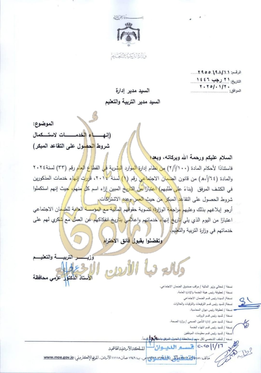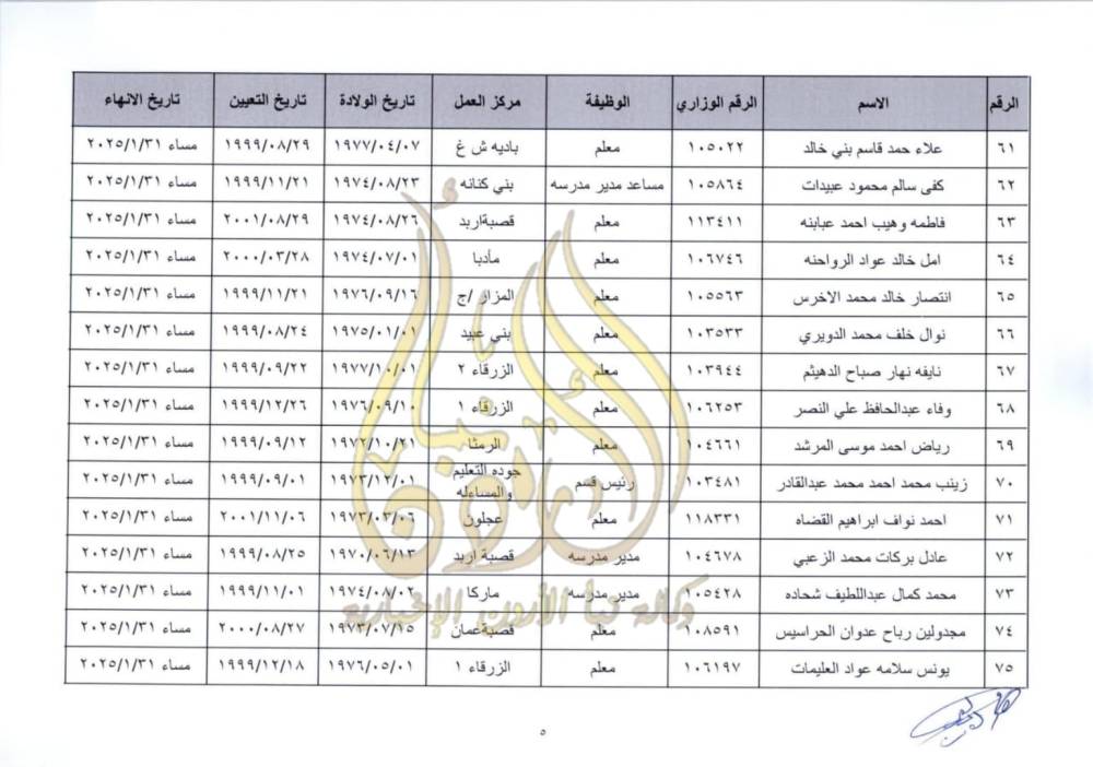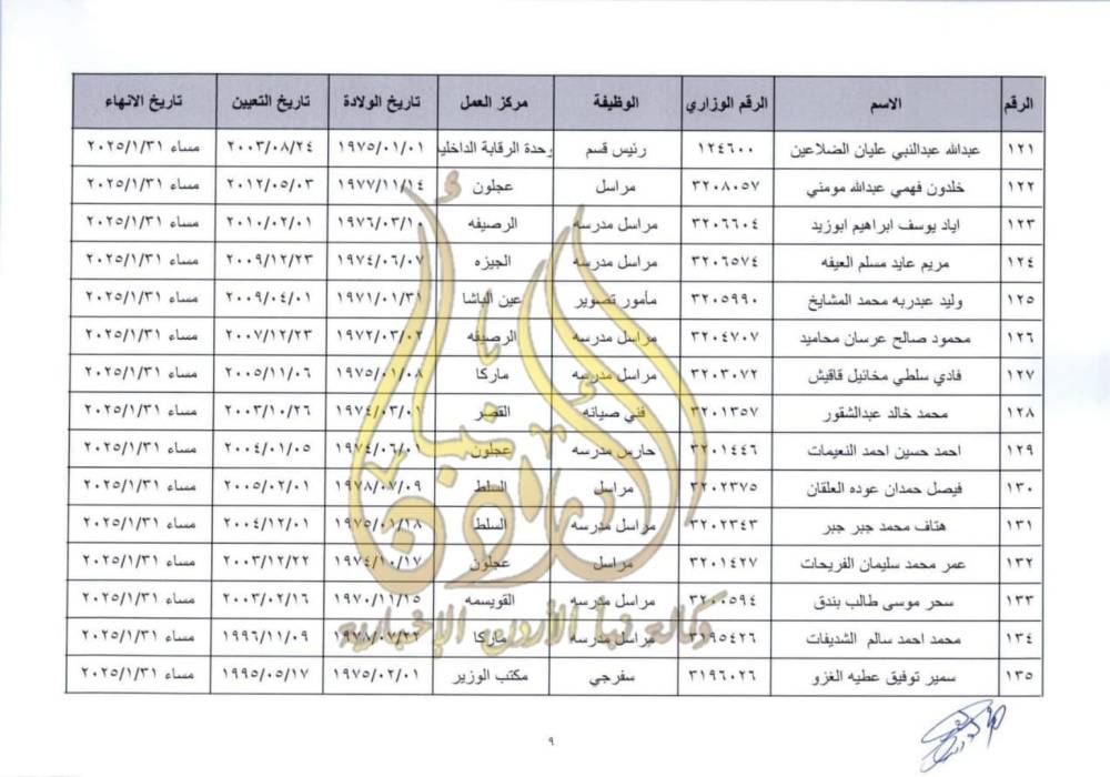 عاجل - احالات الى التقاعد المبكر في وزارة التربية - اسماء