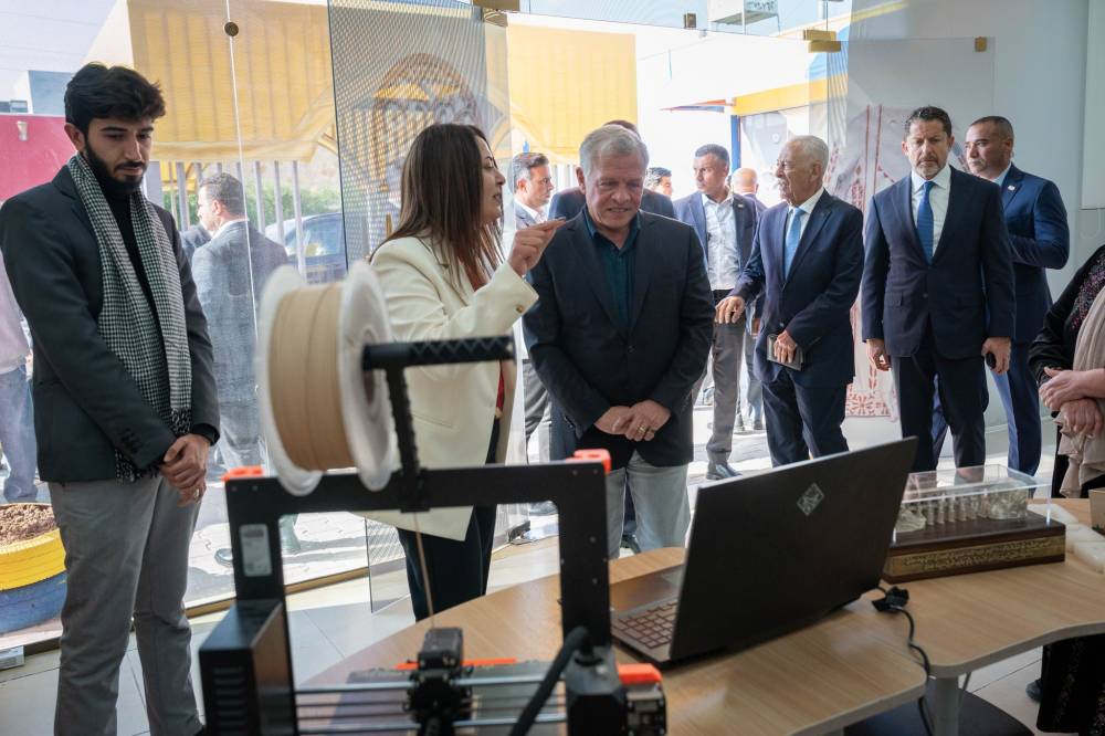 اطلع جلالة الملك عبدالله الثاني في لواء دير علا، على تجربة عدد من اليافعين خلال انخراطهم في برامج الروبوتات، والذكاء الاصطناعي والتصميم، التي ينظمها مركز زها الثقافي، وعلى ورشة للأعمال اليدوية والطباعة ثلاثية الأبعاد، بمشاركة نساء المنطقة، ينظمها المركز بالشراكة مع جمعية ذات النطاقين الخيرية.