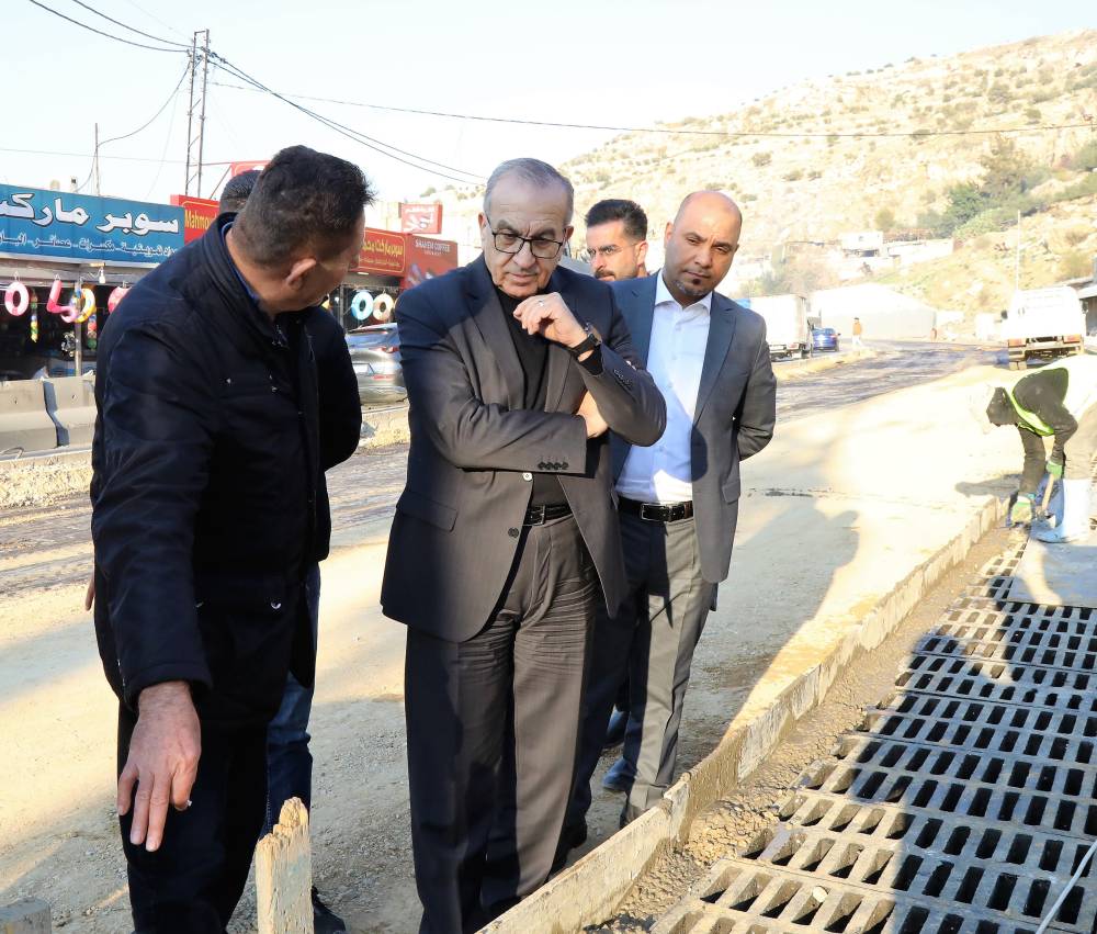 تفقد وزير الأشغال العامة والإسكان المهندس ماهر أبو السمن اليوم الإثنين، مشروع تأهيل نظام تصريف المياه الجوفية والسطحية الذي تنفذه الوزارة على طريق البحر الميت-العدسية "منطقة النبعات".