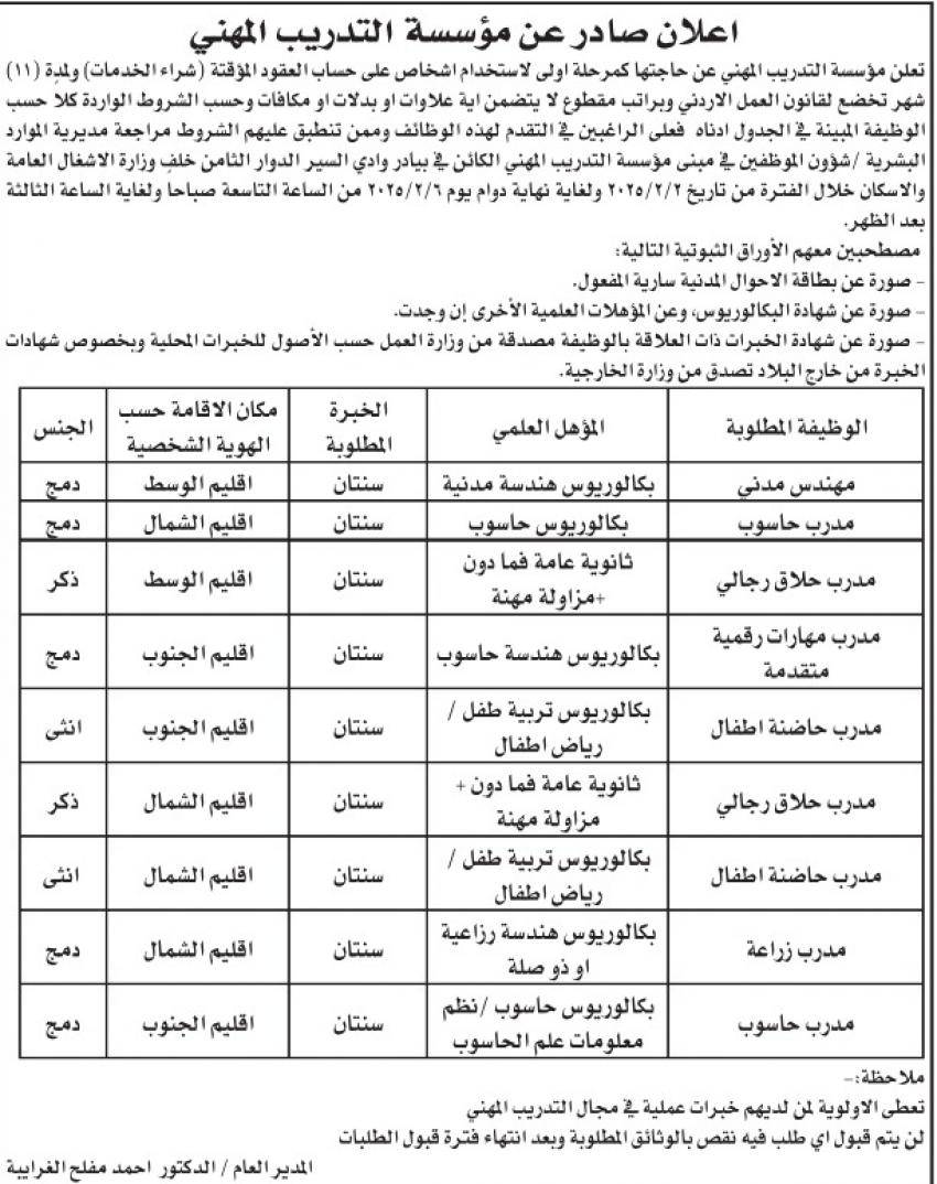 وكما أعلنت مؤسسات أخرى عن توفر شواغر وظيفية لديها.