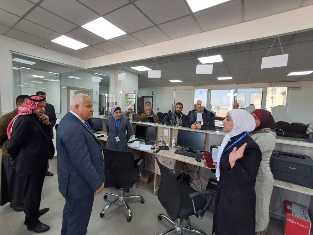 وتفقد البكار، خلال الزيارة، بحضور النائب حابس الفايز وأمين عام الوزارة فاروق الحديدي سير العمل والخدمات المقدمة للمواطنين، واستمع إلى مطالب وملاحظات مراجعي المكتب.
