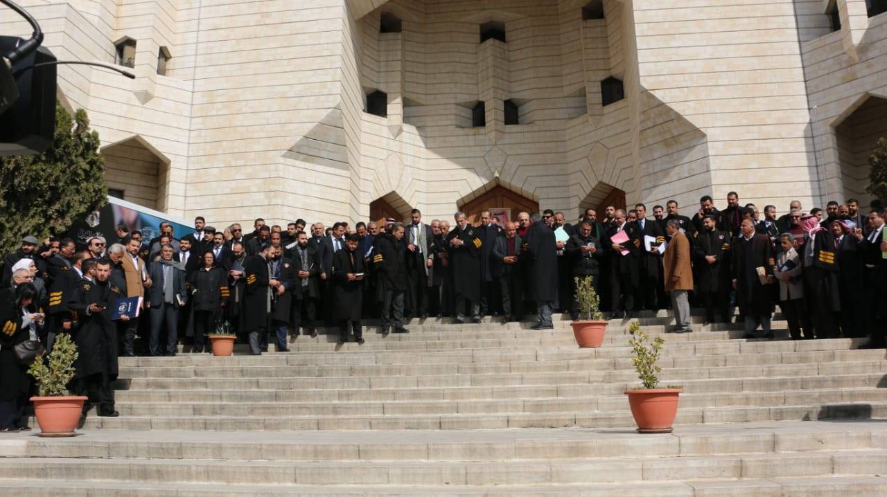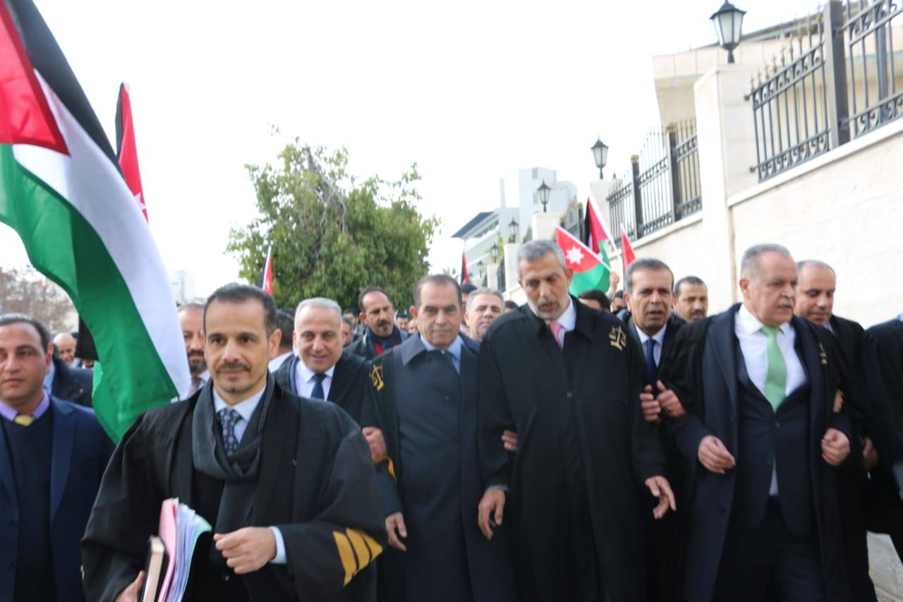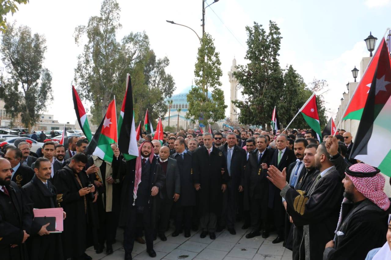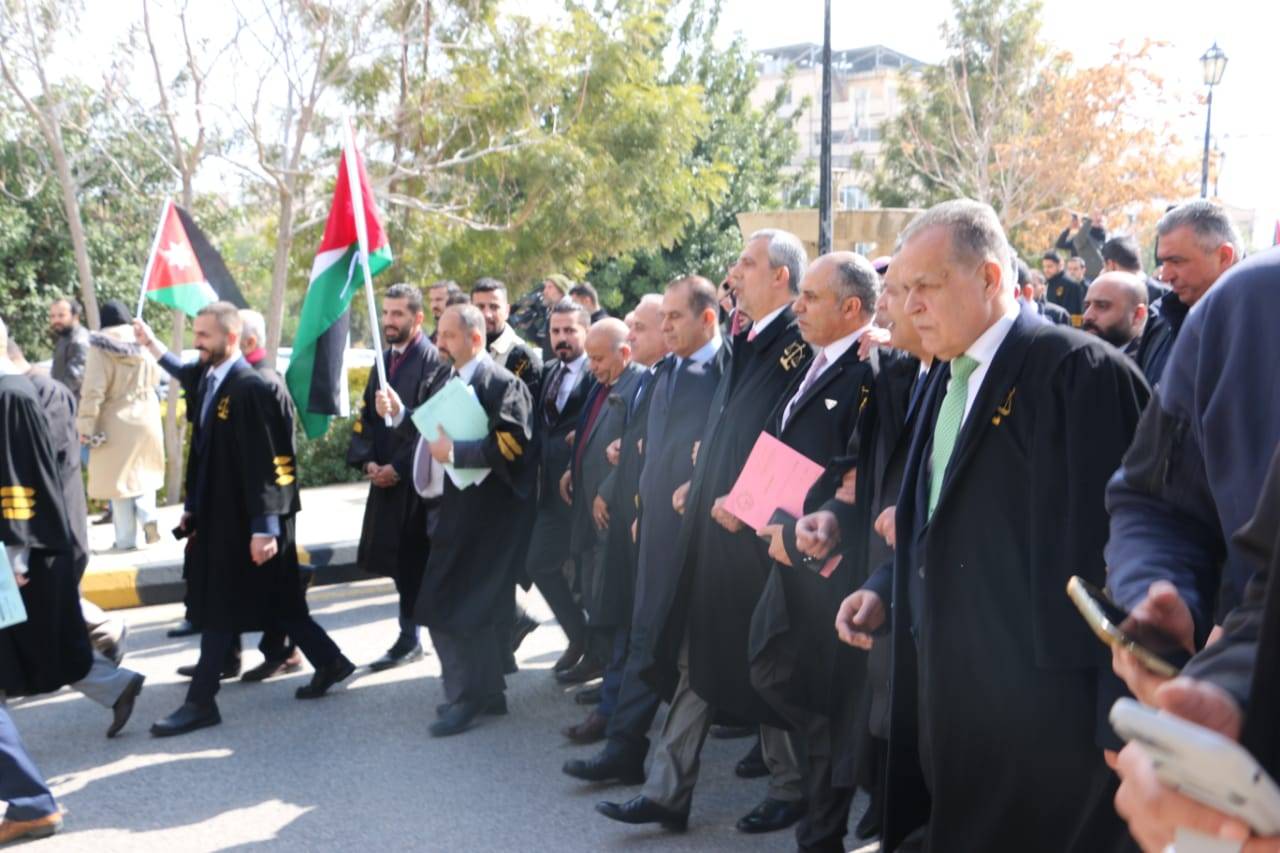 المحامون يتوقفون عن الترافع أمام المحاكم ويسيرون بالارواب إلى مجلس النواب دعما لجلالة الملك