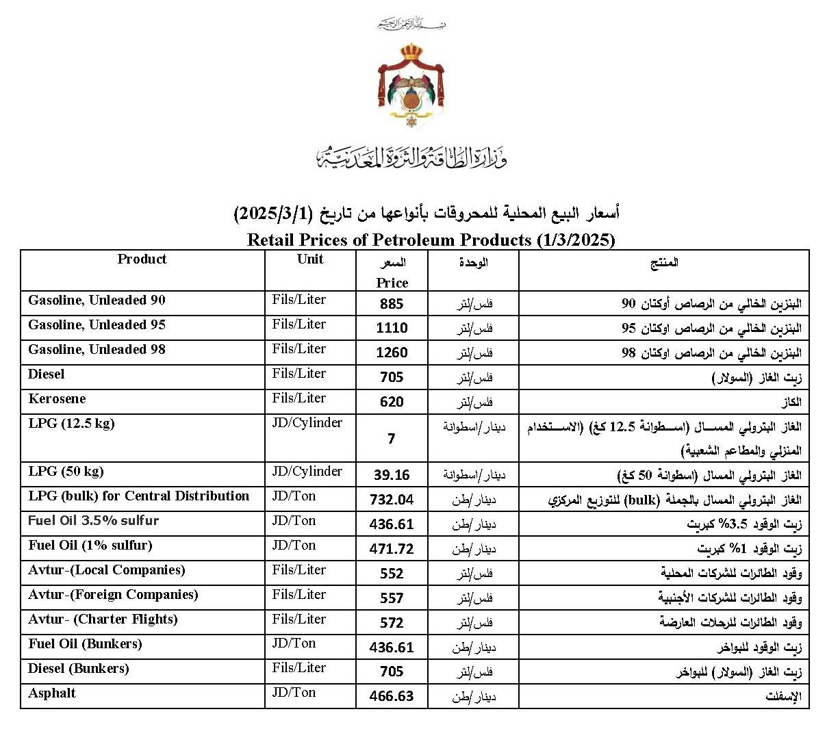 تالياً اسعار البيع المحلية للمحروقات بأنواعها اعتباراً من تاريخ 1/3/5202