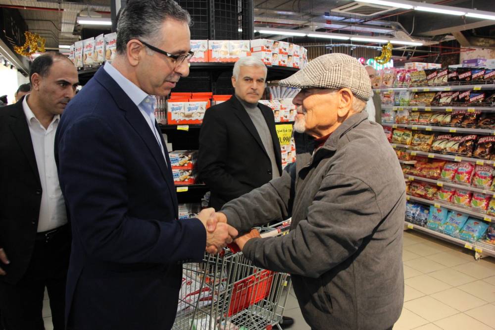 وجال م. القضاة يرافقه رئيس غرفة تجارة الأردن العين خليل الحاج توفيق وعدد من مسؤولي الوزارة في أجنحة المحلات التجارية والأسواق التي زارها واستفسر من المتسوقين عن وفرة السلع وأسعارها وتعدد الخيارات من ذات السلع.