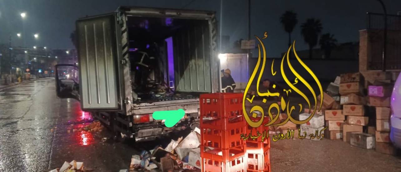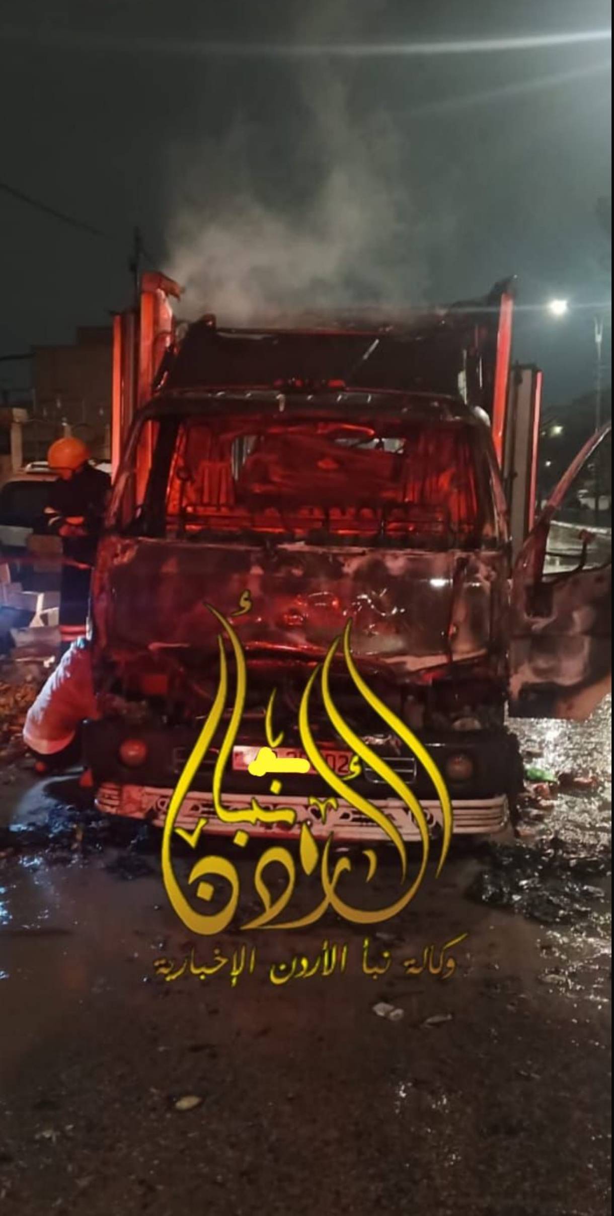 عاجل - احتراق مركبة شحن في الرصيفة (صور وفيديو)