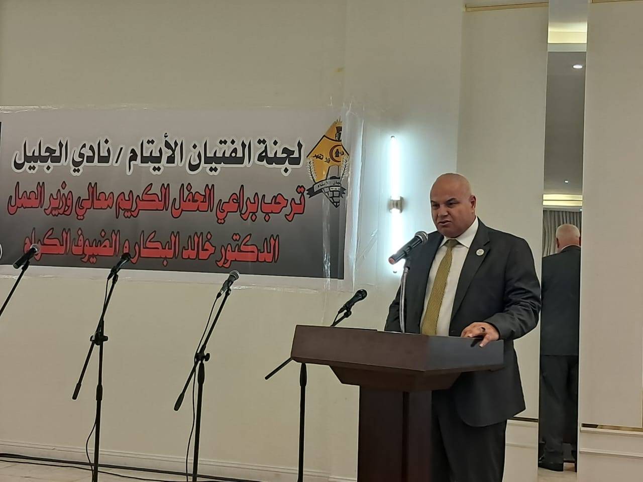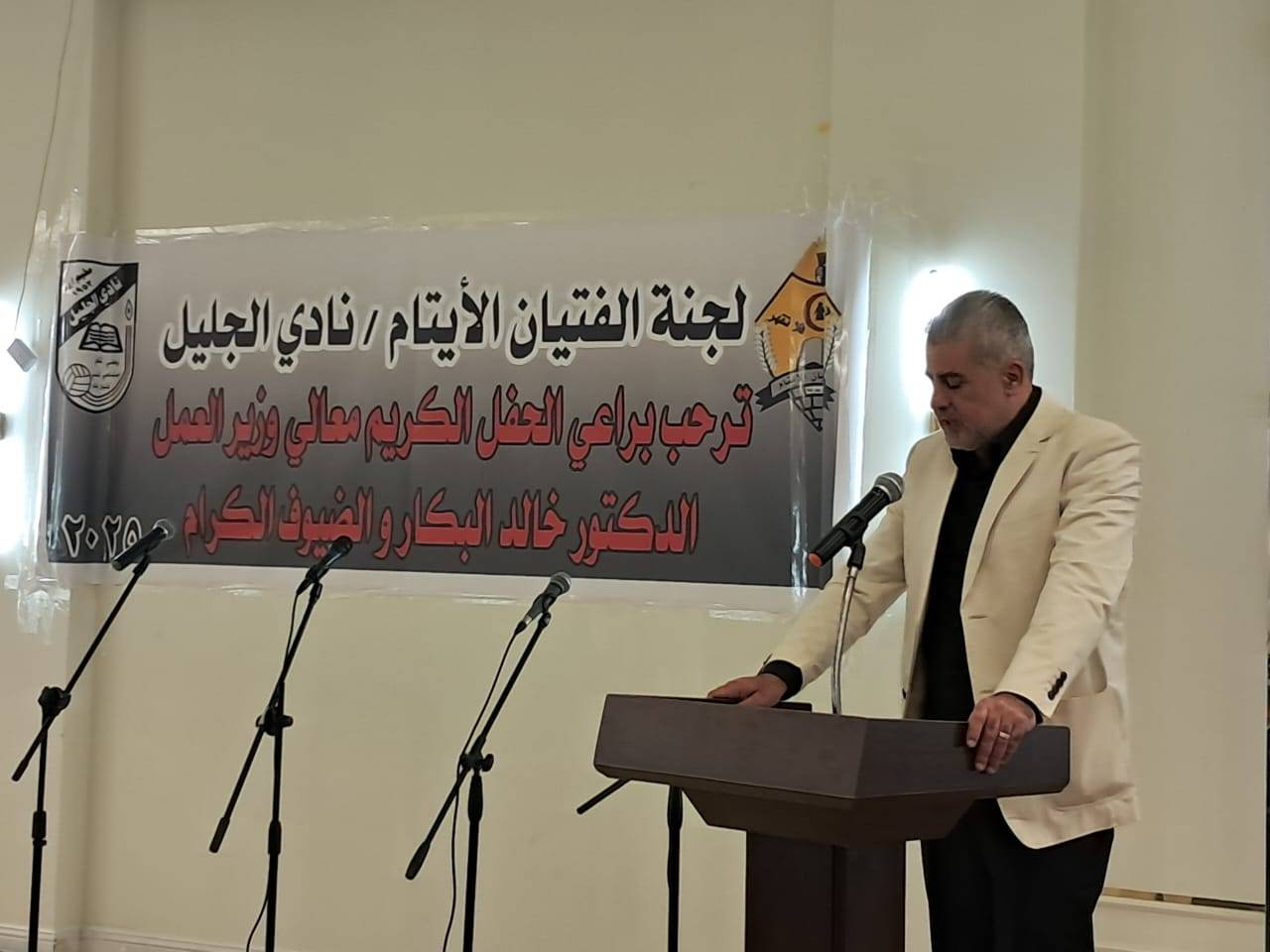 رعى وزير العمل، الدكتور خالد البكار، السبت حفل إفطار رمضاني للأيتام أقامه نادي الجليل الرياضي في محافظة إربد.