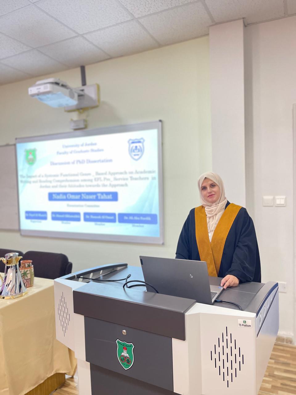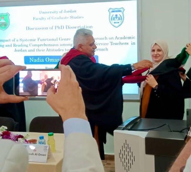 تخرّج الدكتورة ناديا عمر طاهات من الجامعة الأردنية بعد مناقشة أطروحة دكتوراه متميزة