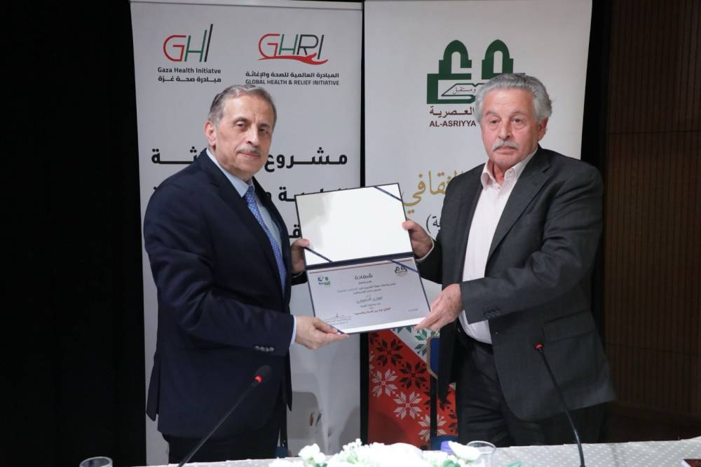 هذا، وشهدت المحاضرة حضورًا نوعيًا كبيرًا، وتفاعلًا لافتًا من نخبة المثقفين والمهتمين، واختتم اللقاء بقيام د. أسعد( والجمهور المتحمس) بتكريم الدكتور الحموري بتقديم شهادة تقدير باسم "منتدى العصرية الثقافي"، تقديرًا لجهوده النبيلة وعطائه المتواصل هو وزملائه من اطباء وغيرهم من العاملين في شبكة منظمات ومؤسسات في مبادرة"صحة غزة".