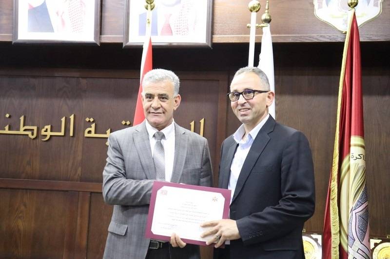 كما قدم الأستاذ سلمان حنيفات من المؤسسة التعاونية الأردنية شكره للمكتبة الوطنية وأعضاء الهيئة التدريبية وكادر المكتبة الوطنية وأثنى على البرنامج التدريبي المتميز.