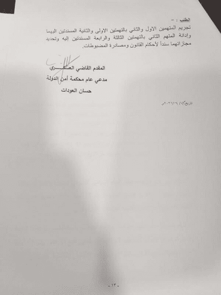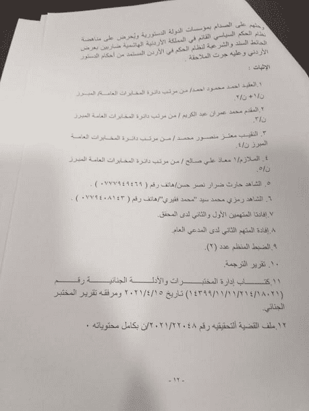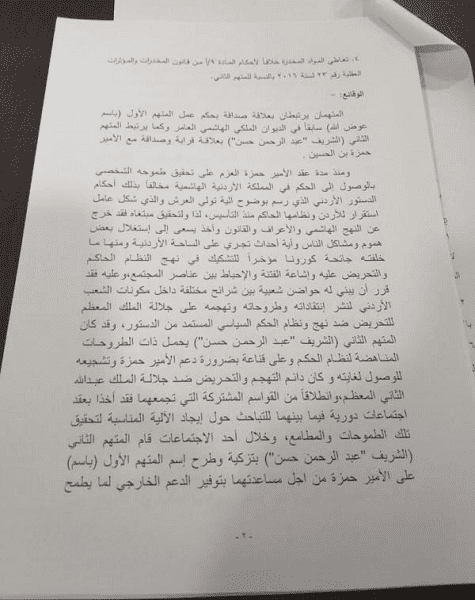 نبأ الأردن- نشر موقع نبأ الأردن الأخباري لائحة الاتهام التي صادق عليها النائب العام لمحكمة أمن الدولة العميد القاضي العسكري حازم عبدالسلام المجالي، في القضية المتعلقة بالمشتكى عليهما كل من (باسم إبراهيم يوسف عوض الله) و(الشريف "عبدالرحمن حسن" زيد حسين).