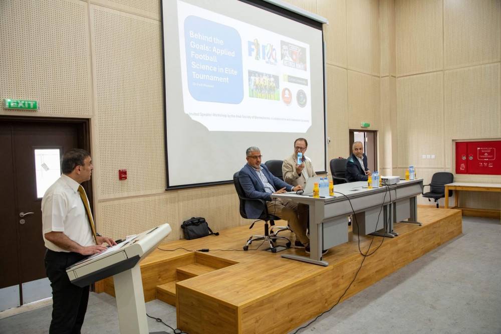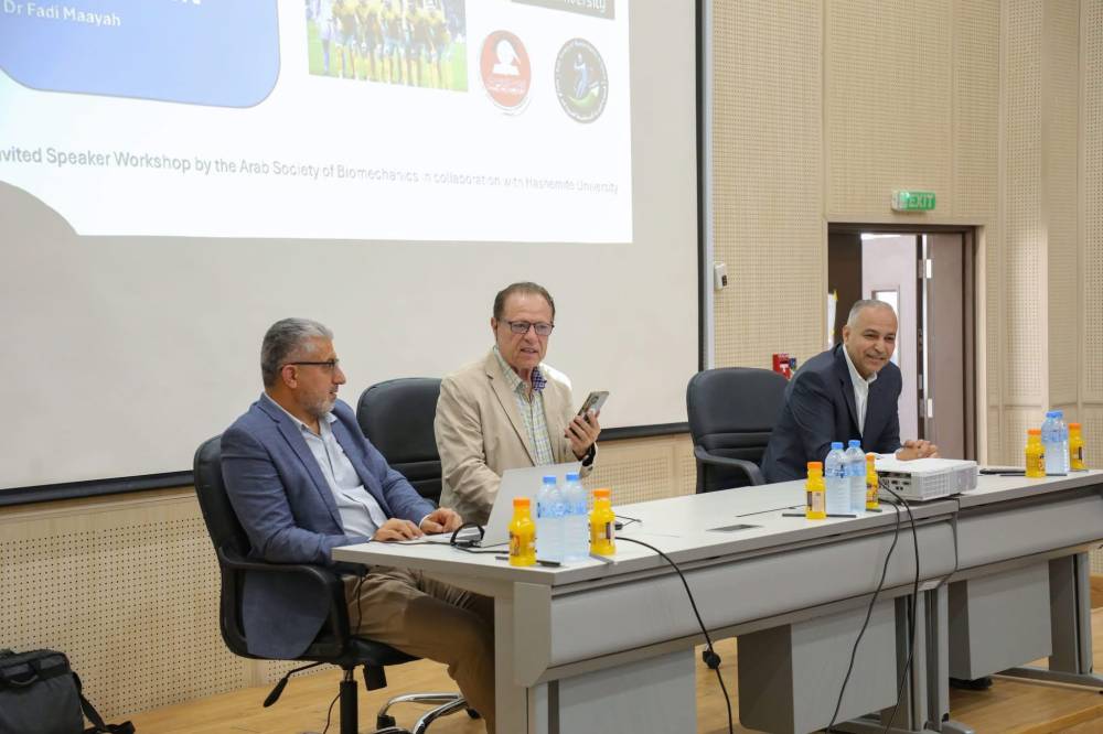 نظمت كلية التربية البدنية وعلوم الرياضة في الجامعة الهاشمية بالتعاون مع الجمعية العربية للميكانيكا الحيوية في الرياضة، ورشة علمية بعنوان "وراء الأهداف: علم كرة القدم التطبيقي في التحضير لبطولات النخبة، تحدث فيها الدكتور فادي معايعة من جامعة كيرتن الأسترالية، وخبير الميكانيكا التحليلية الأستاذ الدكتور هاشم الكيلاني، بحضور الأستاذ الدكتور عمر هنداوي، عميد الكلية، وعدد من أعضاء الهيئة التدريسية والطلبة في الكلية، والتي قدمها الأستاذ الدكتور حسن الخالدي .