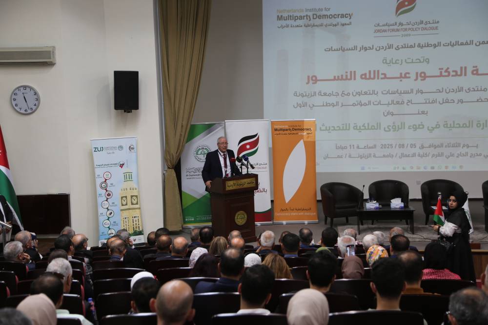 في إطار التوجهات الوطنية نحو تحديث الإدارة المحلية وتعزيز المشاركة المجتمعية في صناعة القرار، رعى دولة الدكتور عبدالله النسور، رئيس مجلس أمناء جامعة الزيتونة الأردنية، فعالياتالمؤتمر الوطني الأول للإدارة المحلية: واقع وتطلعات، والذي نظمه منتدى الأردن لحوار السياسات، بالتعاون مع المعهد الهولندي للديمقراطية متعددة الأحزاب، واستضافته جامعة الزيتونة الأردنية.