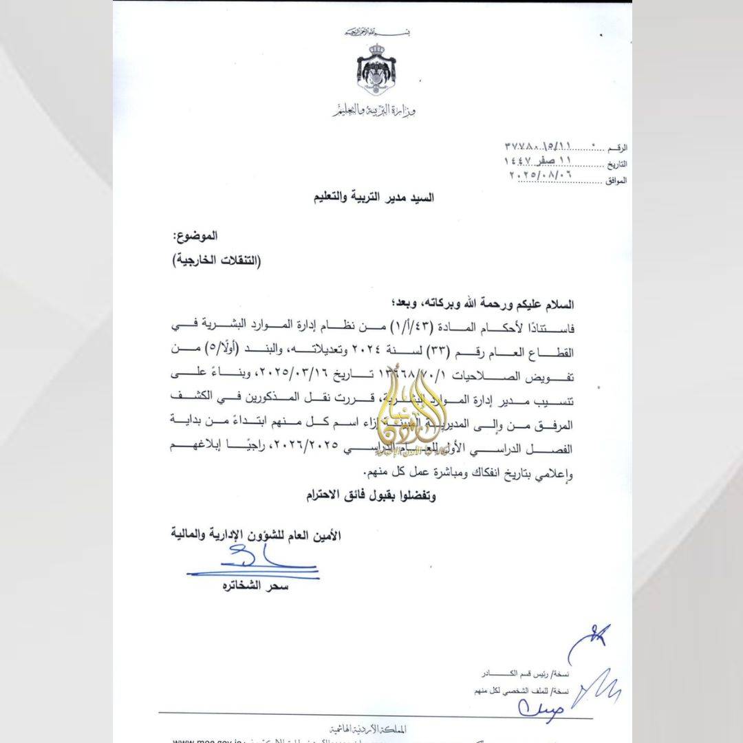 شهدت وزارة التربية والتعليم تنقلات واسعة بين المديريات المختلفة.
