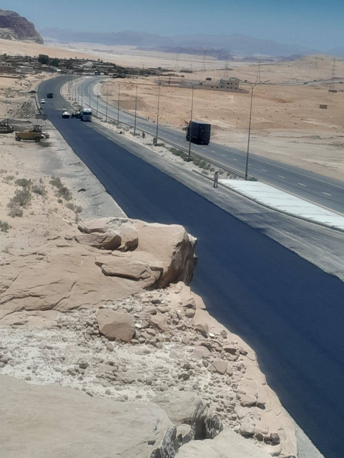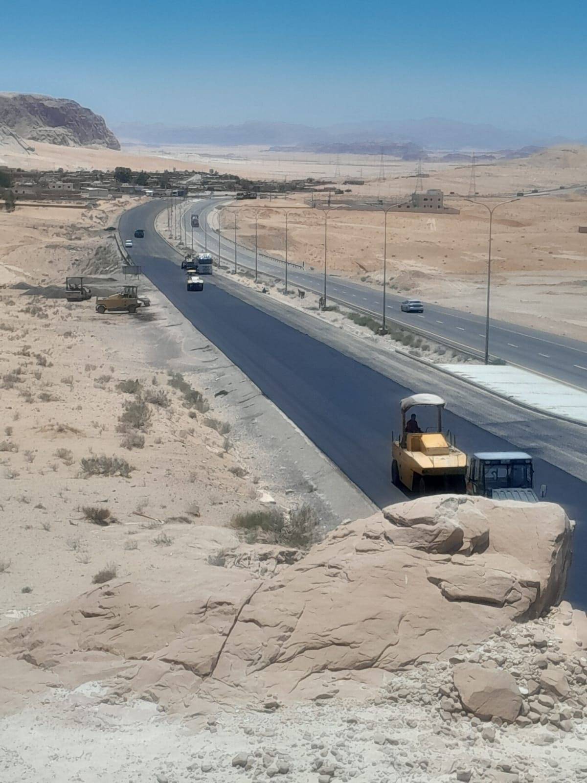 أنهت وزارة الأشغال العامة والإسكان مشروع إضافة طبقة إسفلتية سطحية جديدة على الطريق الصحراوي بدءا من رأس النقب وحتى دبة حانوت للاتجاه المغادر من العقبة إلى عمان خلال ثلث المدة المقررة لتنفيذ أعمال العطاء.