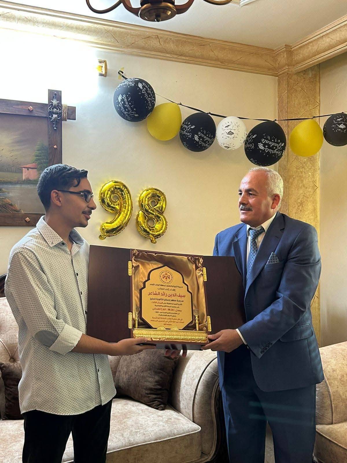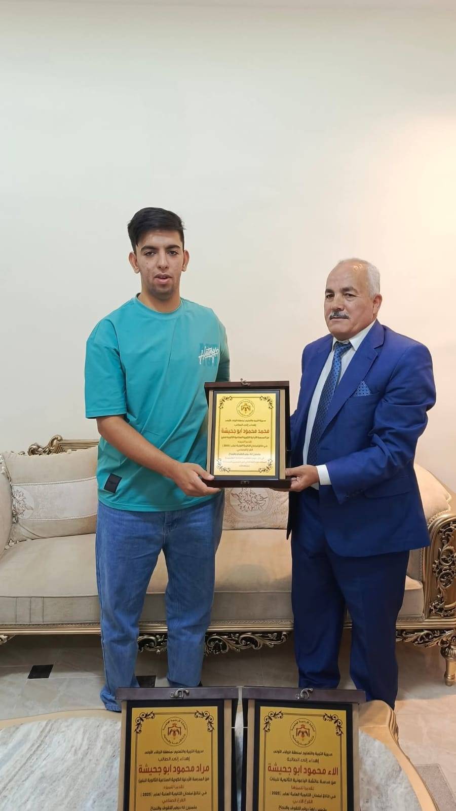 مدير تربية الزرقاء الأولى يكرم أوائل الثانوية العامة والتوائم الأربعة في منازلهم