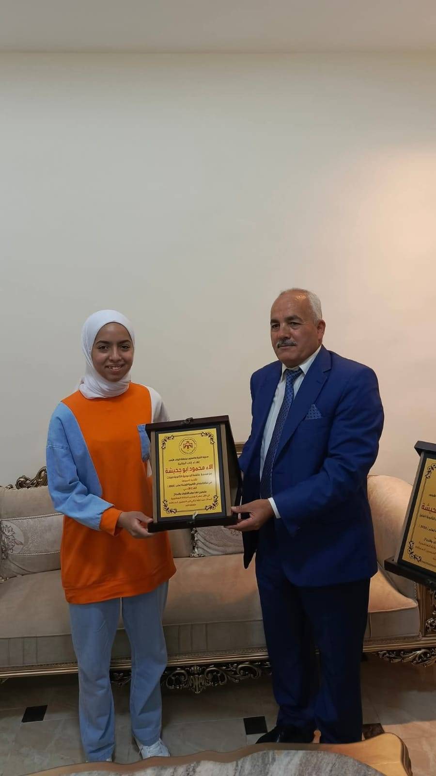 الطالبة آلاء محمود أبو جحيشة – مدرسة عائشة الباعونية الثانوية للبنات – الفرع الأدبي، بمعدل 91.5 .