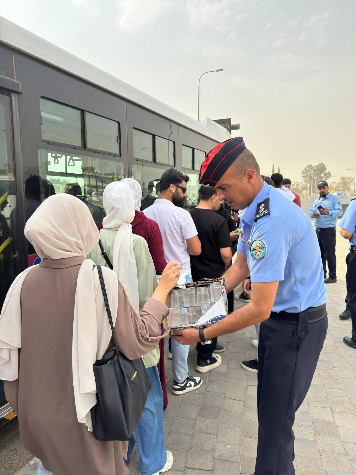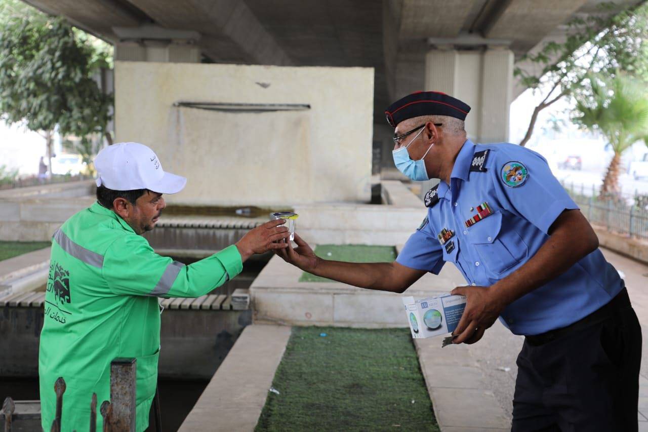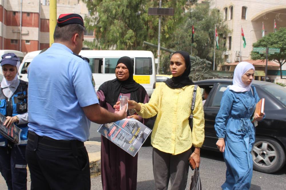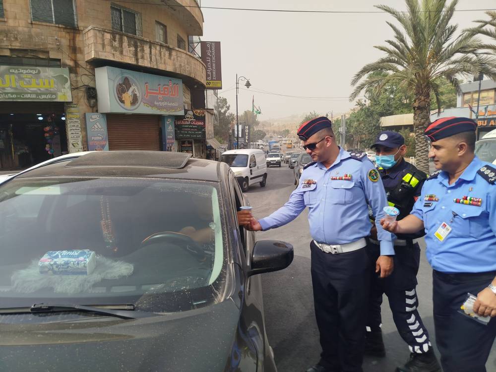 أطلقت مديرية الأمن العام، اليوم، مبادرة وطنية بعنوان "سقيا رحمة"، بهدف تقديم العون والمساعدة للمواطنين، وتعزيز الوعي الوقائي، وتوزيع المياه والكمامات على المواطنين في مختلف مناطق ومحافظات المملكة، تزامناً مع الموجة الحارة والأجواء المغبرة.