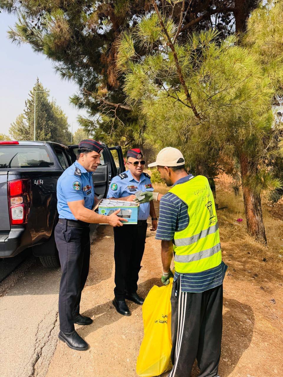 وقامت الفرق الميدانية من الإدارات المرورية والشرطة والدرك والدفاع المدني، بتوزيع المياه والكمامات ونشر التوعية والإرشادات الوقائية، لحماية المواطنين والحفاظ على صحتهم، كما رفعت الإدارات والمديريات المختصة من جاهزيتها في ظل الظروف الجوية السائدة.
