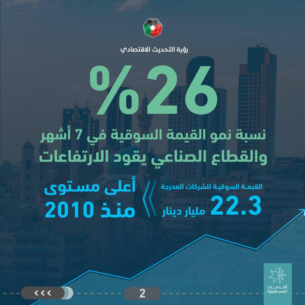 كما ساهم تحسن أداء الشركات المدرجة، وتحقيقها نتائج مالية إيجابية، في جذب اهتمام المستثمرين بفعل تنامي الطلب الإقليمي على الصادرات الصناعية الأردنية، واستجابة السوق السريعة لفرص الاستثمار والتوزيعات النقدية.