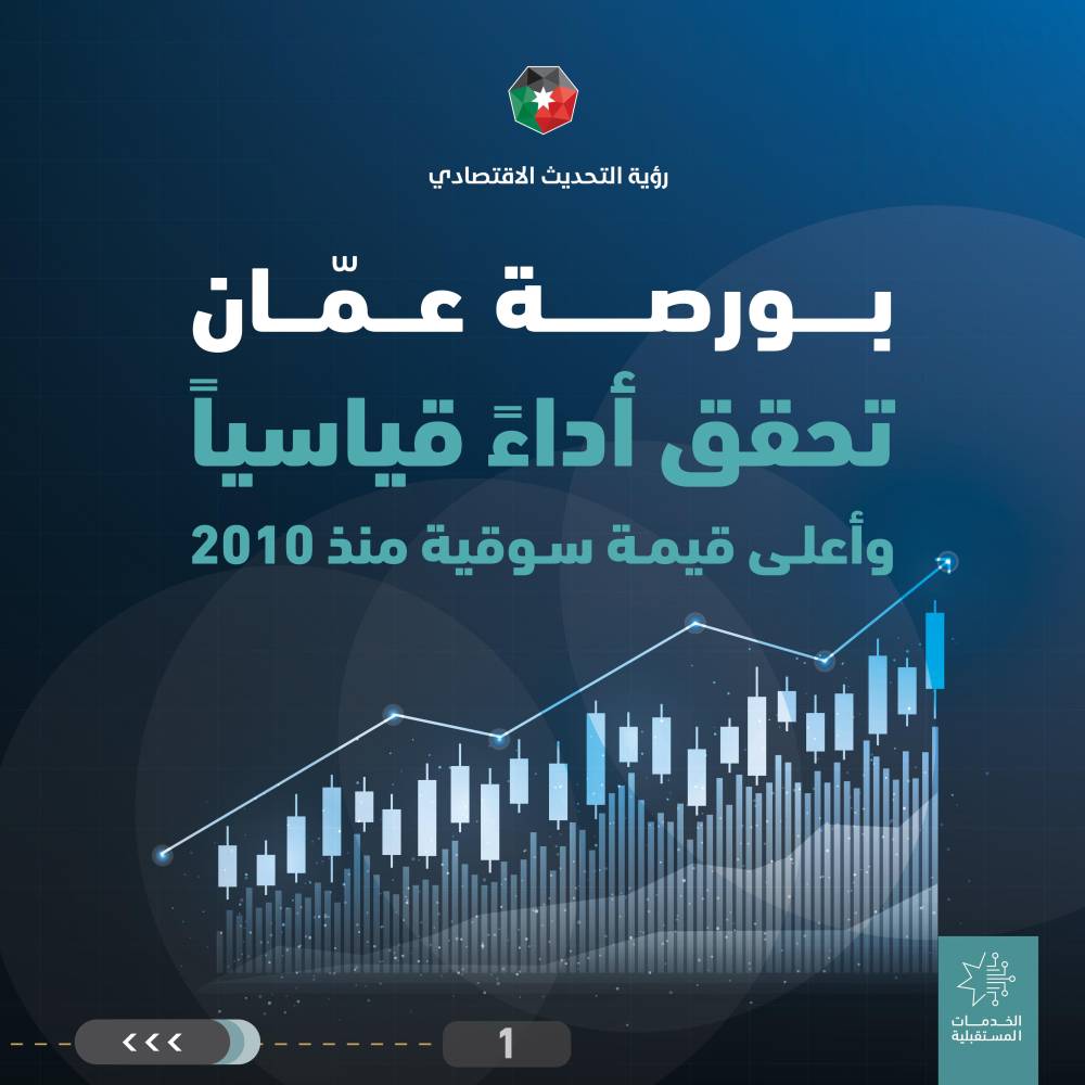 بورصة عمان تسجل ارتفاعا قياسيا وأعلى قيمة سوقية منذ 2010