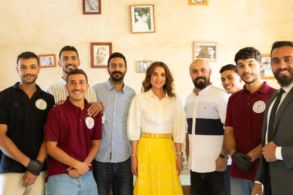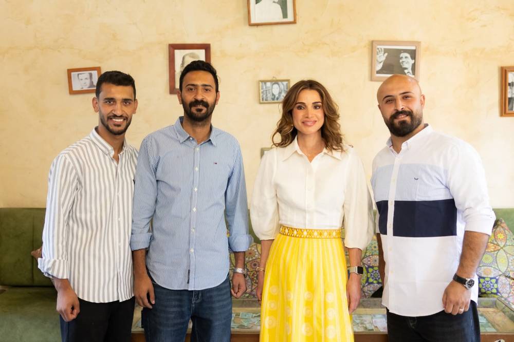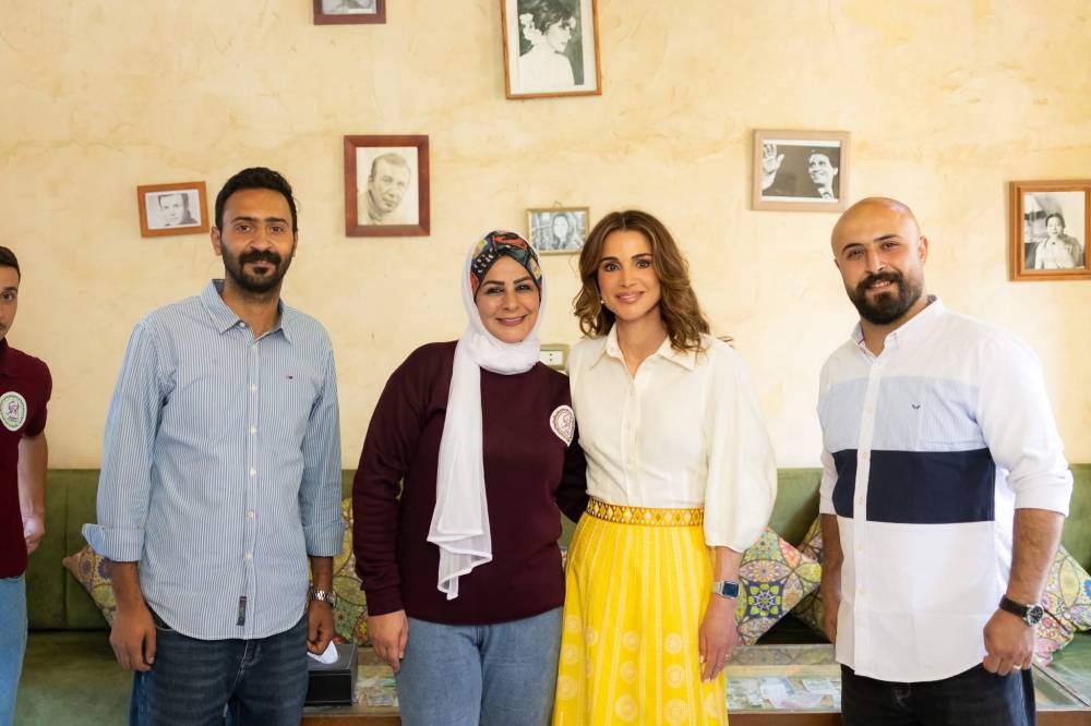 وخلال جولتها في وسط المدينة زارت جلالتها مشروع مقهى الأكثم الذي تم إنشاؤه بعد إعادة ترميم أحد أقدم البيوت التراثية المطلة على وسط المدينة والتقت الشابان المؤسسان للمشروع أكثم وعبدالله عربيات، مستمعة إلى شرح عن فكرة المشروع ومراحل انطلاقه والخطط المستقبلية.
