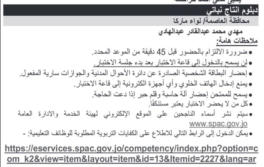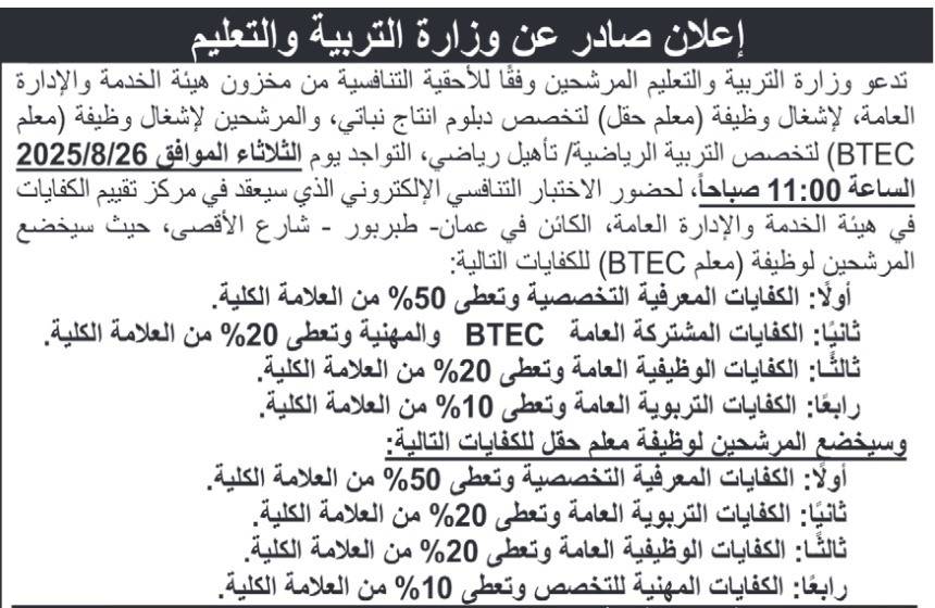 دعت وزارة التربية والتعليم التالية أسماؤهم لحضور الاختبار التنافسي لاشغال وظيفة معلم.