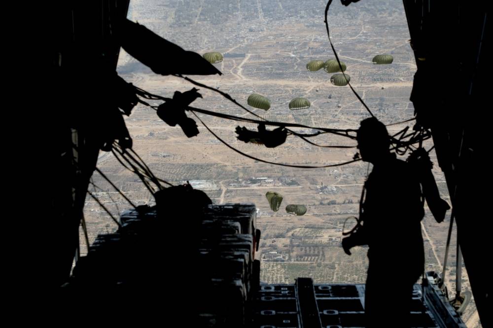 نفذت القوات المسلحة الأردنية، اليوم الاربعاء، عملية إنزال جوي إلى قطاع غزة، شاركت في العملية بالإضافة إلى طائرات سلاح الجو الملكي الأردني، طائرات من كل من جمهورية ألمانيا الاتحادية ودولة الإمارات العربية المتحدة وجمهورية فرنسا ومملكة هولندا وجمهورية سنغافورا وجمهورية اندونسيا، حيث تم إسقاط نحو (62) طناً من المواد الغذائية والإغاثية داخل القطاع.