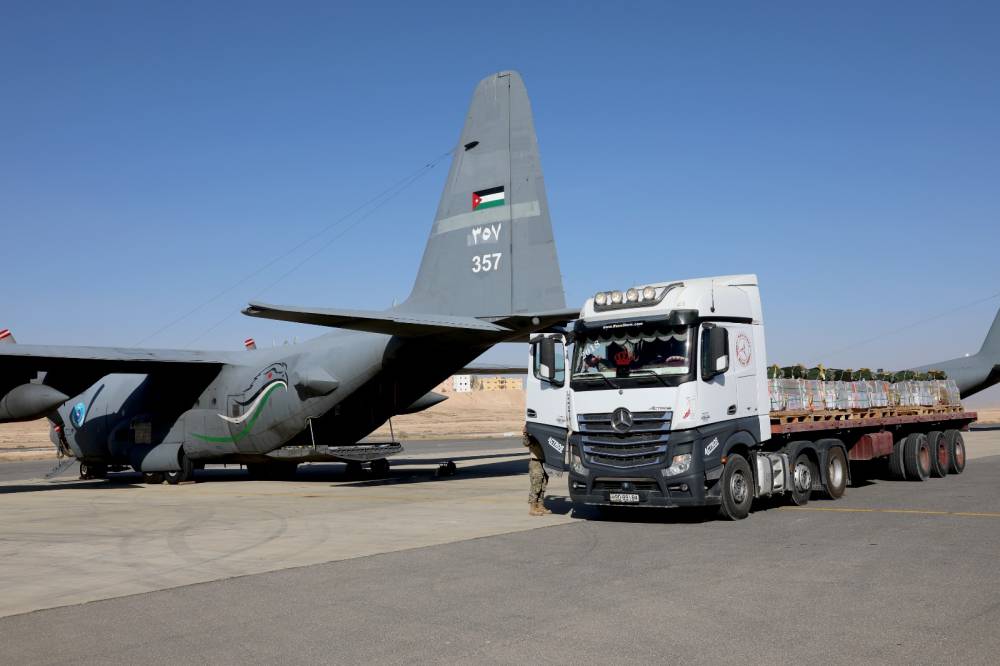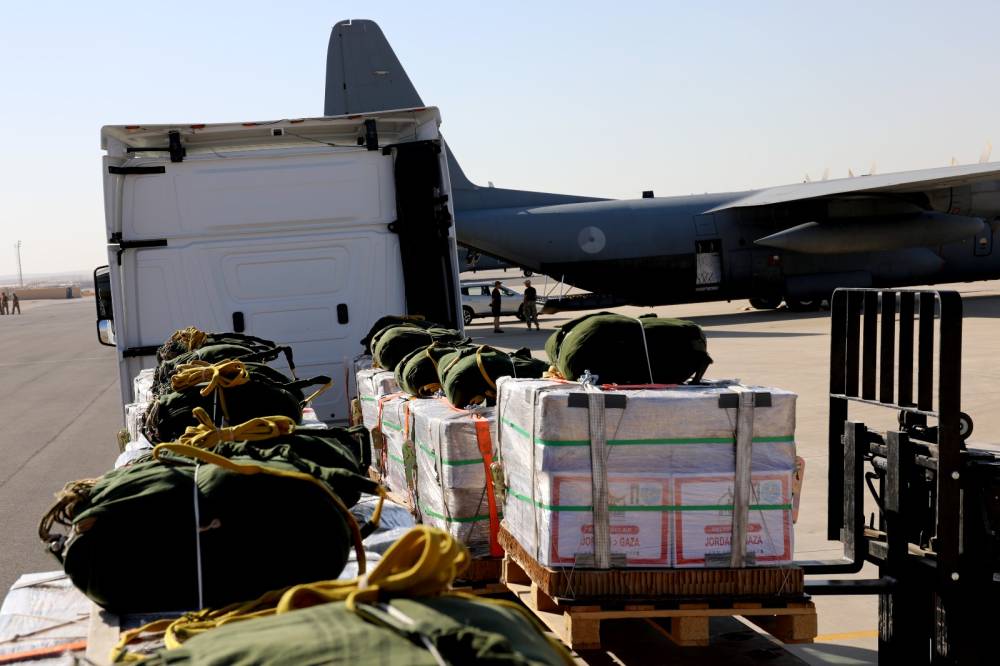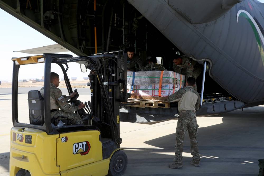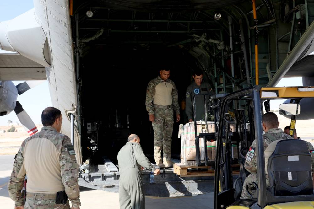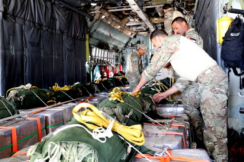 القوات المسلحة الأردنية تنزل (62) طناً من المواد الغذائية والإغاثية على غزة (صور)