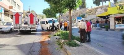 وقال مصدر أمني إن حادث تدهور وقع صباح اليوم لباص ركاب عمومي، ما أدى إلى اصطدامه بعمود كهرباء، وأسفر عن إصابات ورضوض طفيفة بين الركاب، إضافة إلى أضرار مادية في الحافلة واقتلاع العمود من مكانه.