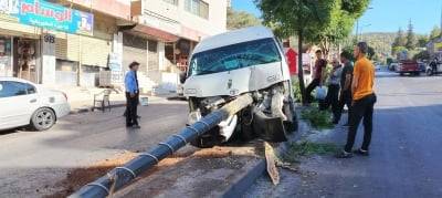 أصيب عدد من ركاب حافلة عمومية صغيرة إثر اصطدامها بعمود كهرباء في وسط مدينة عجلون.