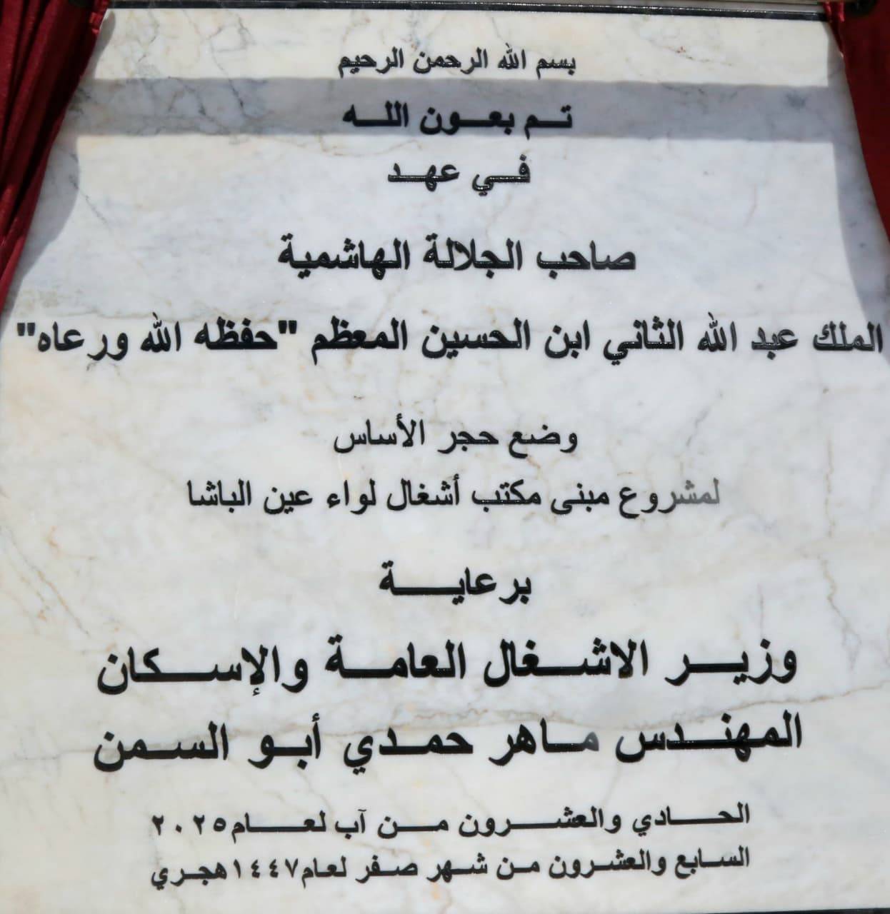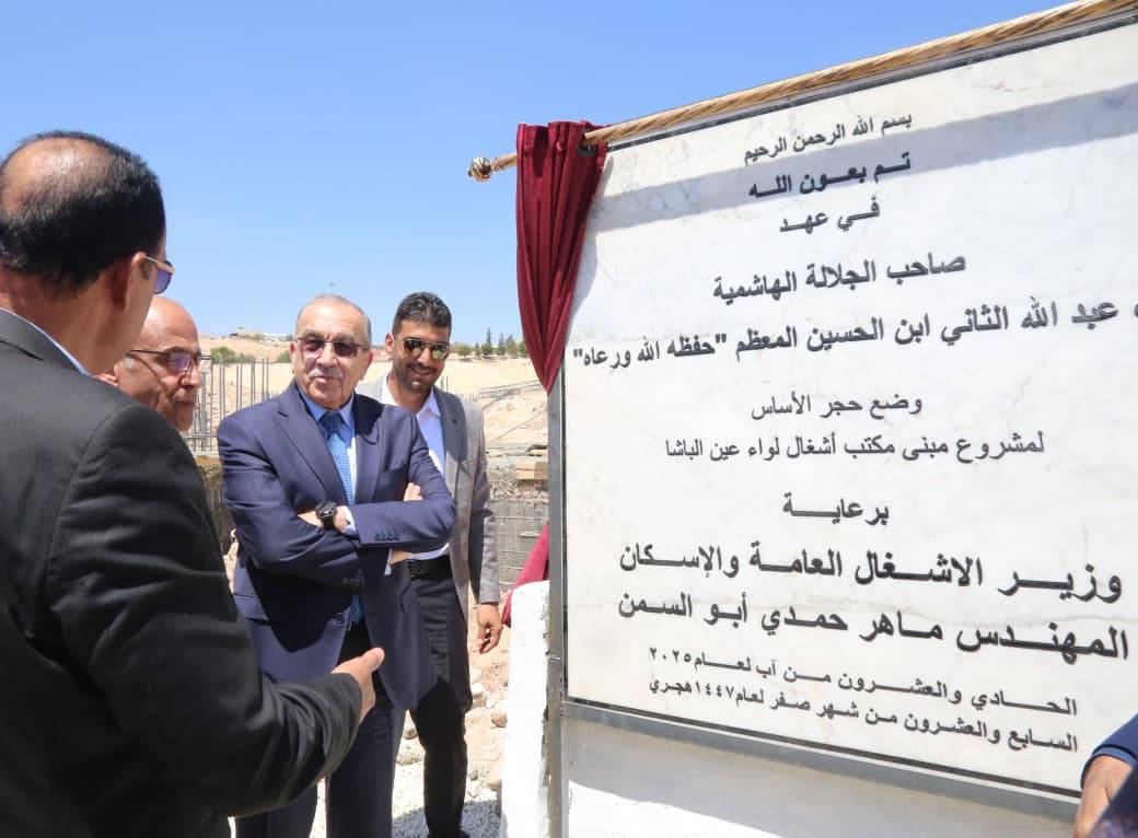 وضع وزير الأشغال العامة والإسكان ماهر أبو السمن، اليوم الخميس، حجر الأساس لمشروع المبنى الجديد لمكتب أشغال لواء عين الباشا في محافظة البلقاء.