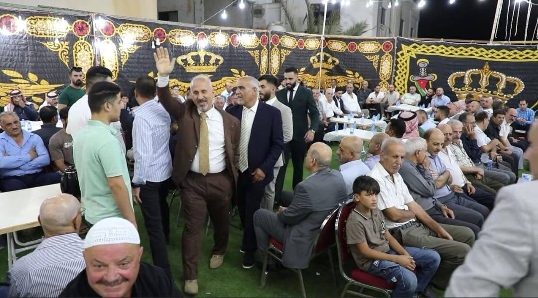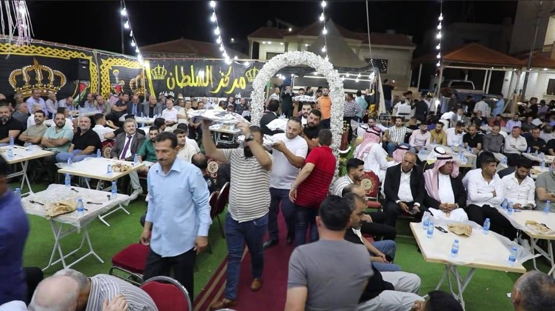 أقام غسان زيد أبو لطيف، وليمة عشاء في مضارب عشيرة بني معروف بالأزرق، بمناسبة زفاف نجله صهيب على "يارا" كريمة أكرم ضامن بركة.