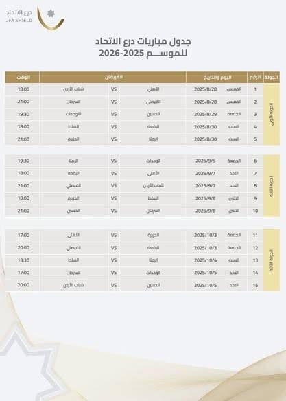 إصدار جدول مباريات بطولة درع الاتحاد