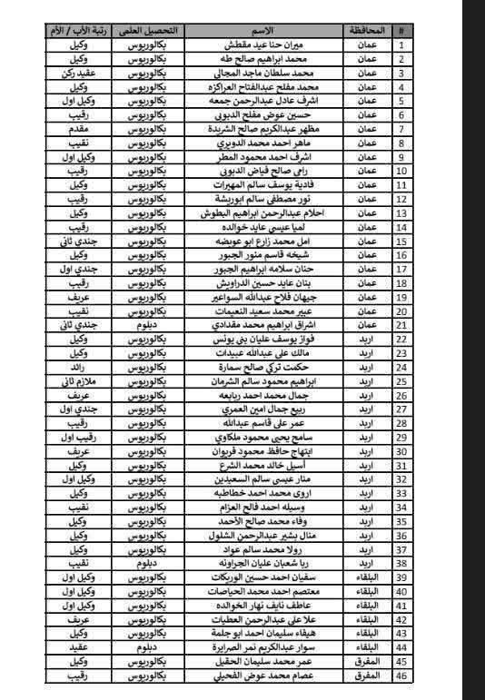 ودعا الرقاد جميع المتقدمين إلى الاطلاع على أسماء المقبولين من خلال الموقع الإلكتروني ،وصفحات مواقع التواصل الاجتماعي الخاصة بالمؤسسة ، متمنياً التوفيق والنجاح للجميع، ومؤكداً أن المؤسسة ستبقى بيت الخبرة والداعم الأول لهذه الفئة العزيزة التي نعتز بها جميعاً، وسيتم التواصل مع المقبولين من خلال هيئة الخدمة والأدارة العامة لغايات استكمال اجراءات التعيين وتحديد مراكز العمل.