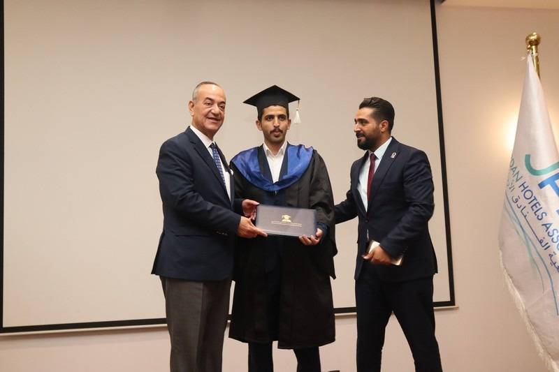 وختم الحمايدة كلمته بالإشادة بالشراكة مع جمعية الفنادق الأردنية وكلية عمون، مهنئاً الخريجين، ومتمنياً لهم بداية موفقة في مسيرتهم المهنية.