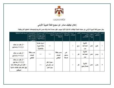 أعلن مجمع اللغة العربية عن توفر عدد من الوظائف الشاغرة، على أن يبدأ التقديم يوم الثلاثاء الموافق 26/8/2025، وذلك حسب التفاصيل التالية: